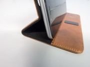 Sebbene sia abbastanza rigida, la custodia può essere all’occorrenza piegata diventando un piccolo leggio: non è particolarmente orientabile, di fatto può assumere una sola posizione, che comunque si rivela ottima per vedere filmati o navigare senza dover tenere l’iPhone in mano. Molto utile specialmente sul più grande iPhone 6 Plus, visto l’uso che si può fare di esso grazie anche alla modalità Landscape studiata da Apple per il nuovo telefono.