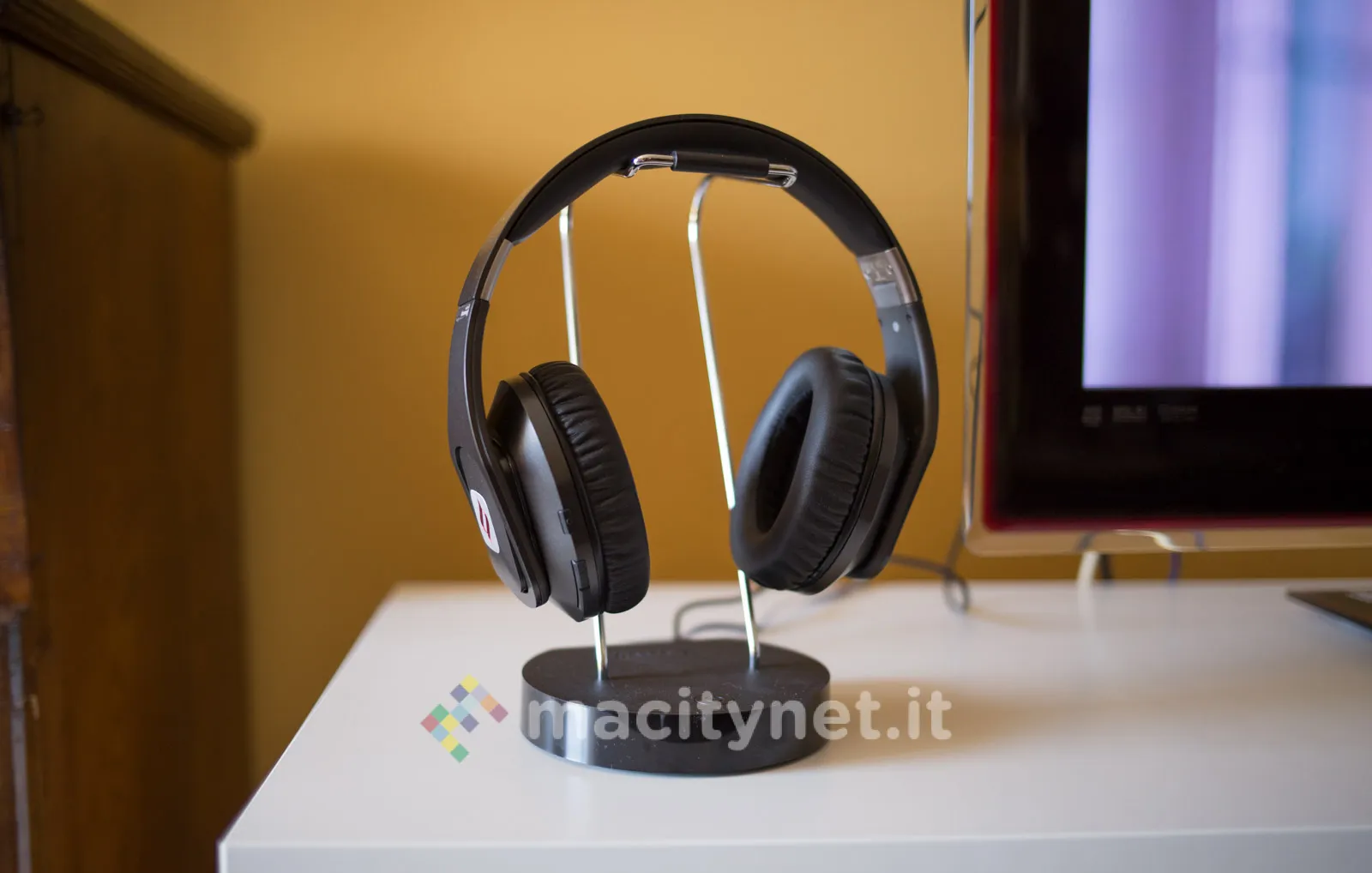 Il supporto si compone di due parti: una base (13 x 11 x 2.2 cm) in plastica satinata e piuttosto pesante (254g) – ciò va a vantaggio della sua stabilità finale – e un braccio in metallo (altezza 20cm) il cui apice è leggermente incurvato e rinforzato da un inserto in gomma per assicurare un’ottima stabilità delle cuffie quando si appoggiano su di esso. Montare le due parti è un attimo: basta incastrare il braccio metallico alla base per mezzo dei due fori.