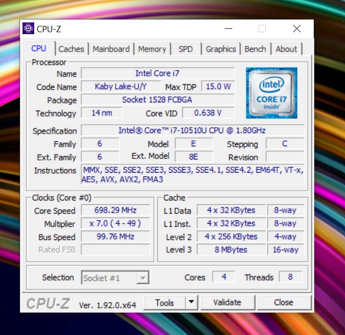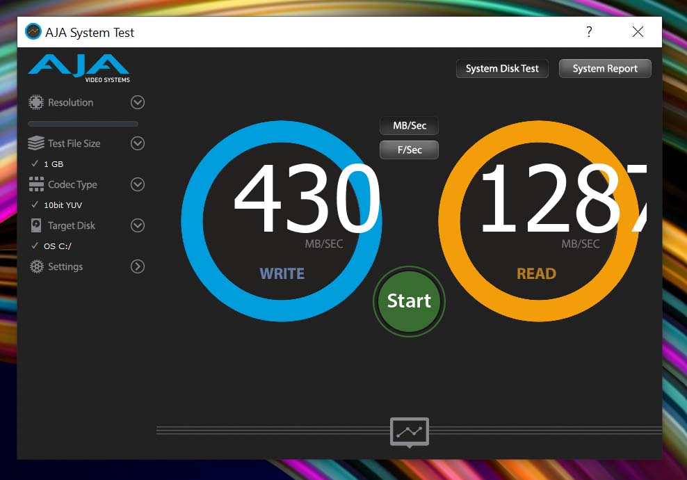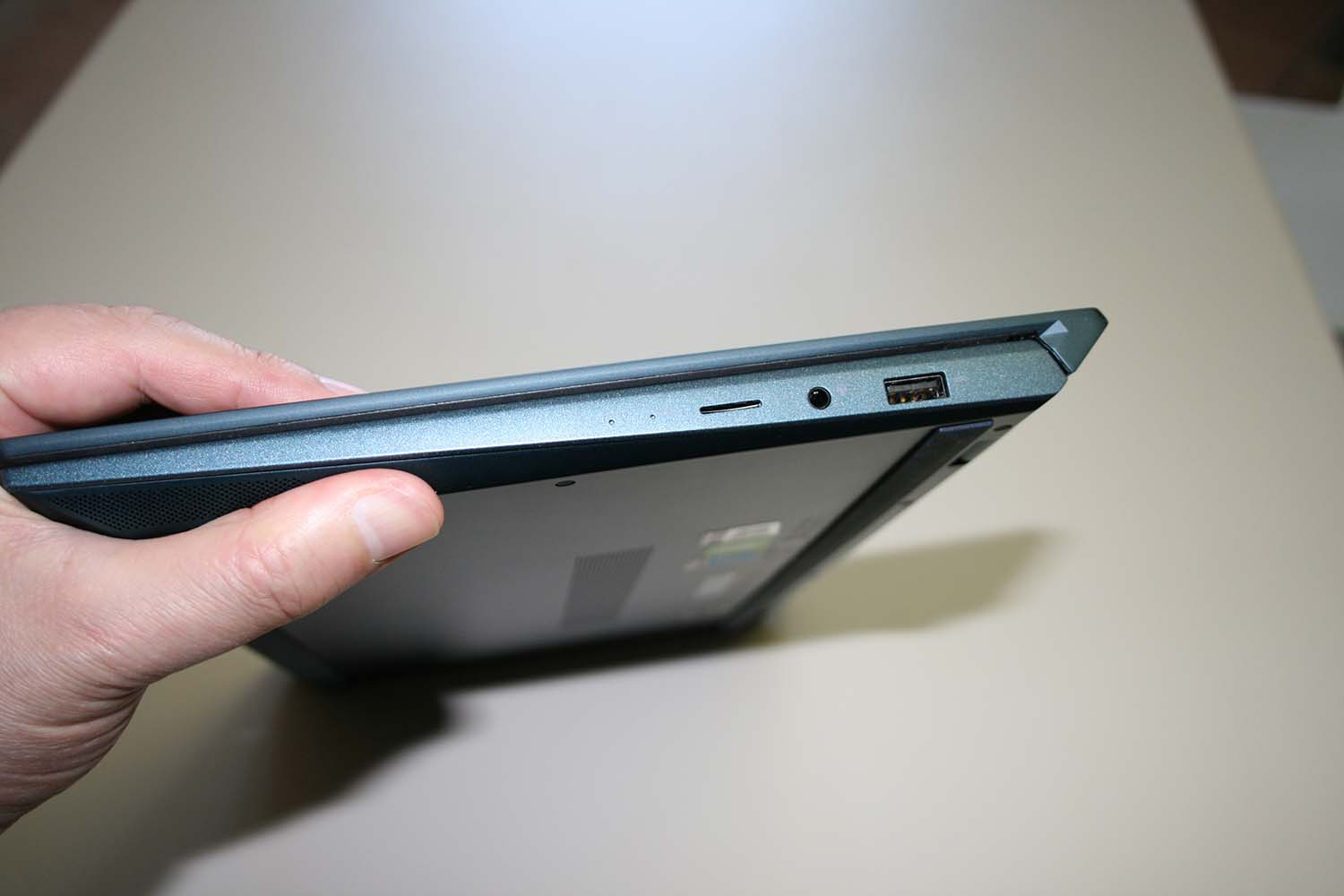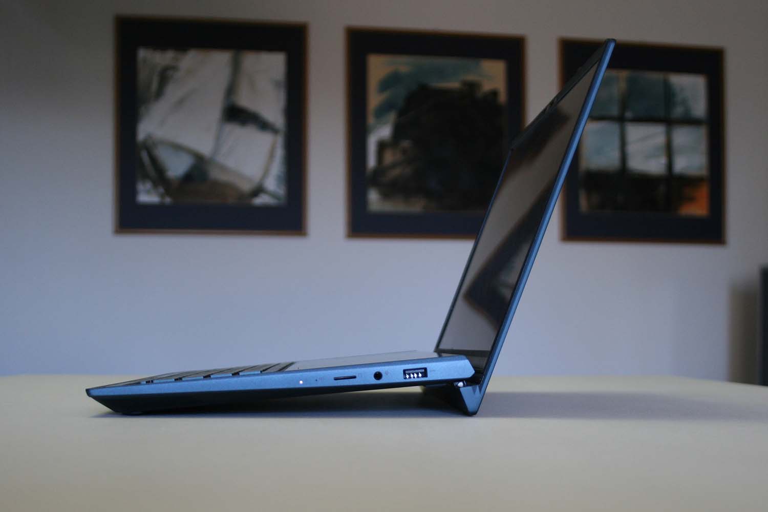 La versione da noi provata è quella con processore Intel Core i7-10510U. È un processore a 14nm presentato nel terzo trimestre del 2019, veloce (1.8GHz la frequenza base) e con quattro core (unità di elaborazione centrale indipendenti) e 8 thread (la sequenza ordinata di base delle istruzioni che possono essere trasmesse da un’unica core CPU). Il chip grafico della scheda video NVIDIA GeForce MX250 aiuta con applicazioni più esigenti ma è ovviamente una GPU entry level e non può permettere miracoli. La produzione del calore sembra contenuta e non abbiamo notato problemi anche con task impegnativi. La macchina si avvia in pochi istanti grazie al disco veloce: le prove con AjA System Test evidenziano: 430 MB/Sec in scrittura e 1287 MB/Sec in lettura.
