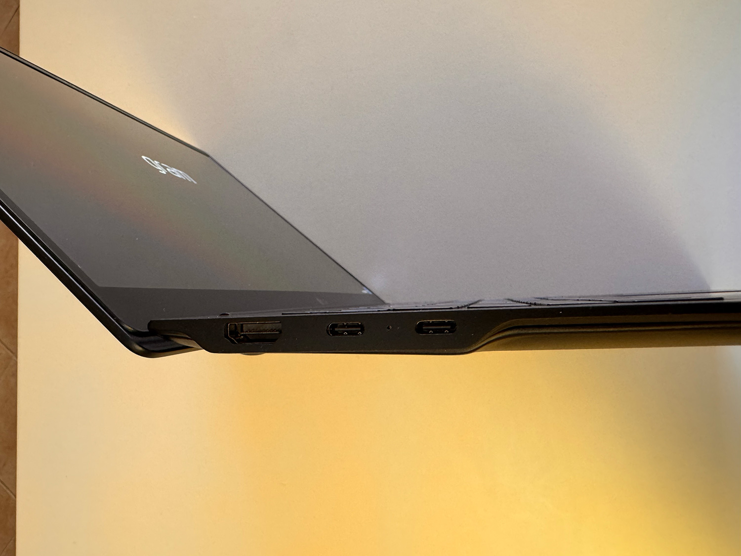 Sulla parte sinistra troviamo l’uscita HDMI e due porte USB-4 (attacco USB-C); con supporto power delivery sulla destra abbiamo due porte USB 3.2 (attacco USB-A) e l’uscita cuffie/microfono. La webcam (montata nella cornice superiore dello schermo) è Full HD IR con Dual Mic (supporta il login con Windows Hello ed è di buona qualità e colori che sembrano discreti); non mancano WiFi 7, Bluetooth 5.4.