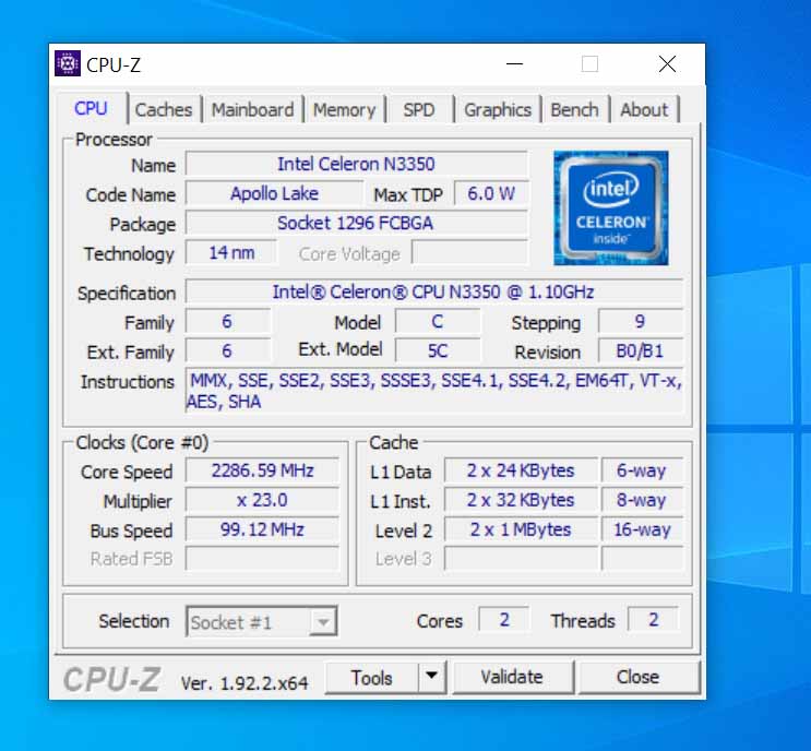 LA CPU un Intel Celeron Apollo Lake N3350: è un processore non recentissimo (terzo trimestre 2016) ma specifico per il segmento mobile, con tecnologia a 14nm, 2 core e 2 thread; la frequenza base è di 1,10 GHz e con il burst può arrivare a 2.40 GHz; integra 2MB di cache L2 e vanta un TDP di 6W.