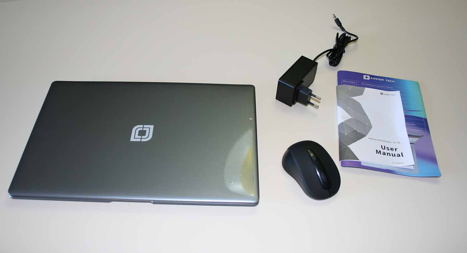 Il notebook arriva in una scatola di cartone all’interno della quale troviamo: il notebook vero e proprio, l’alimentatore, un mouse wireless (con adattatore di serie nella confezione) un manuale multilingua. Le dimensiono sono: 332.3mm x 219.5mm x 15.56mm; il peso è di 1,70kg e lo spessore di circa 15mm; il guscio è plastica grigia ma la sensazione al tatto è piacevole e sembra meno “plasticoso” del previsto.