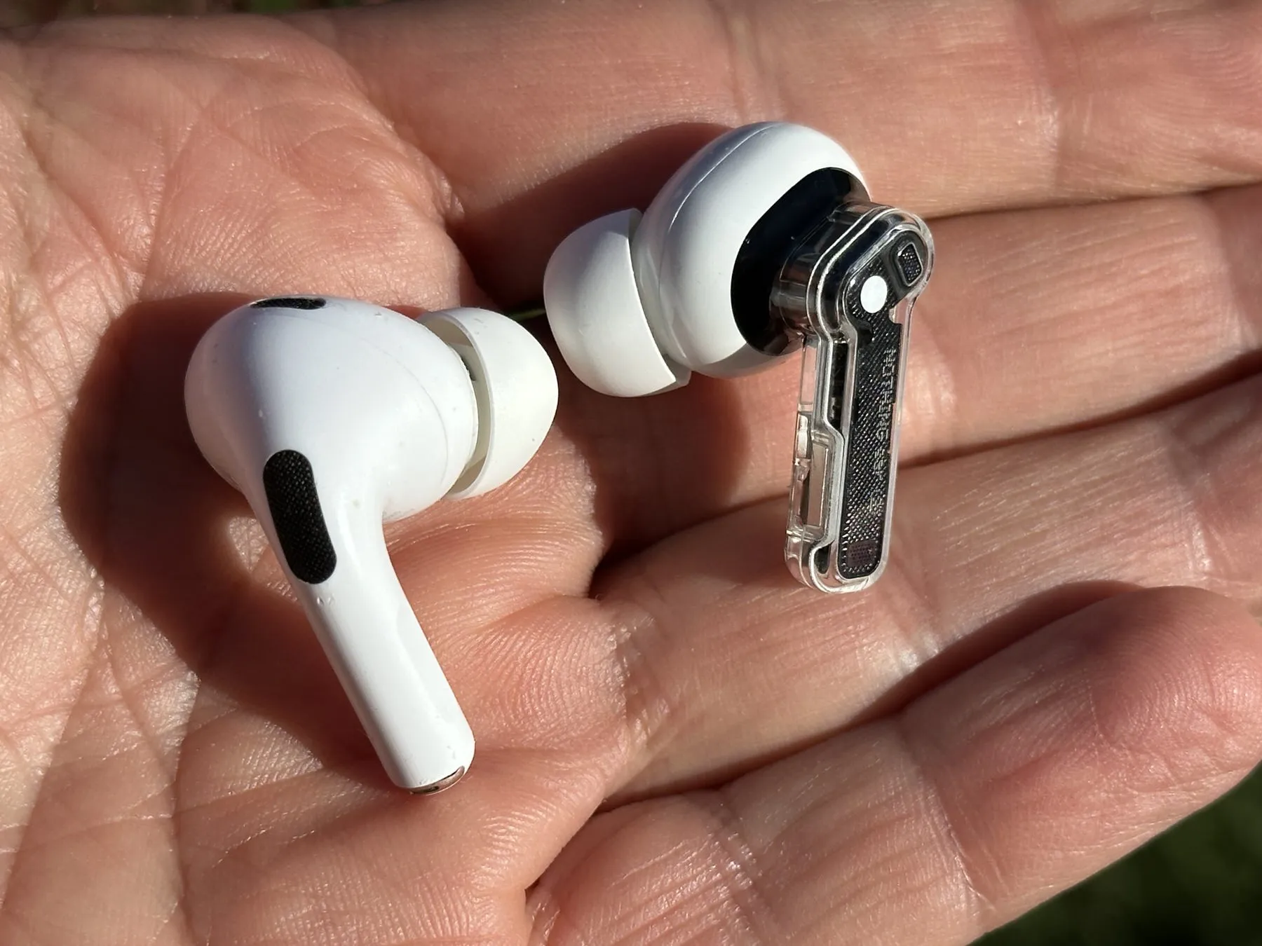 Nonostante sia impossibile confondere i Nothing Ear (2) con gli AirPods la forma e le dimensioni sono quasi gli stessi. Basti pensare che la scatola dei Nothing Ear (2) contiene perfettamente gli auricolari Apple.
