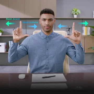 Ma ci sono anche altre funzioni accessorie: ad esempio, se una seconda persona entra nell’inquadratura, la webcam fa il possibile per tenere entrambi, così come è possibile attivare alcune gesture per gestire lo zoom o forzare la camera a seguire il palmo della mano (al posto del soggetto) per guidarla in una specifica angolazione.