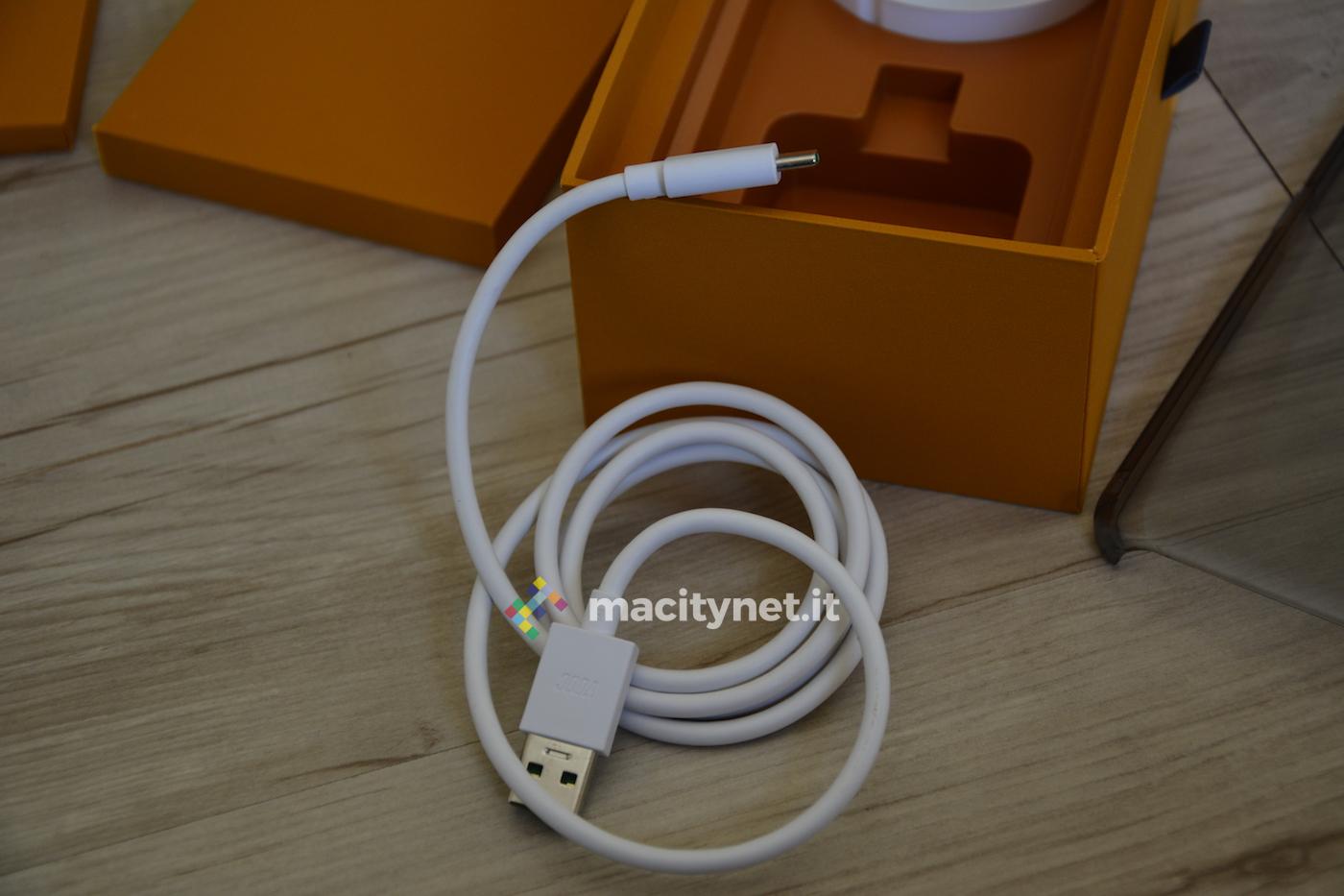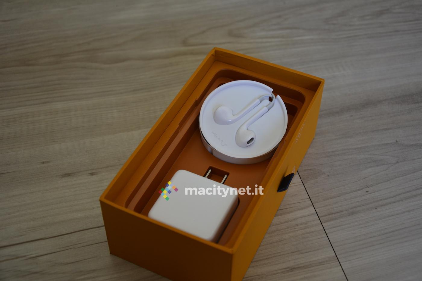 Merita attenzione l’unboxing di questo terminale, perché propone accessori piuttosto interessanti. Al di là del terminale, di cui parleremo a breve, la confezione di vendita include un paio di cuffie, molto simili alle earpods di Apple, con cavo USB-C. Da questa scelta si comprende subito che Oppo Find X rinuncia al jack audio da 3,5 mm, probabilmente per salvaguardare un aspetto ancor più minimale e futuristico. Inoltre, all’interno della confezione è presente anche una cover rigida trasparente, di pregevole fattura e, soprattutto, completamente aperta sulla parte superiore, così da lasciare spazio per l’apertura del carrellino a scomparsa che contiene le tre fotocamere. Il terminale arriva con una pellicola pre installata: ottimo, considerando che sarebbe difficile applicarla alla perfezione per via del display curvo su ambo i lati.