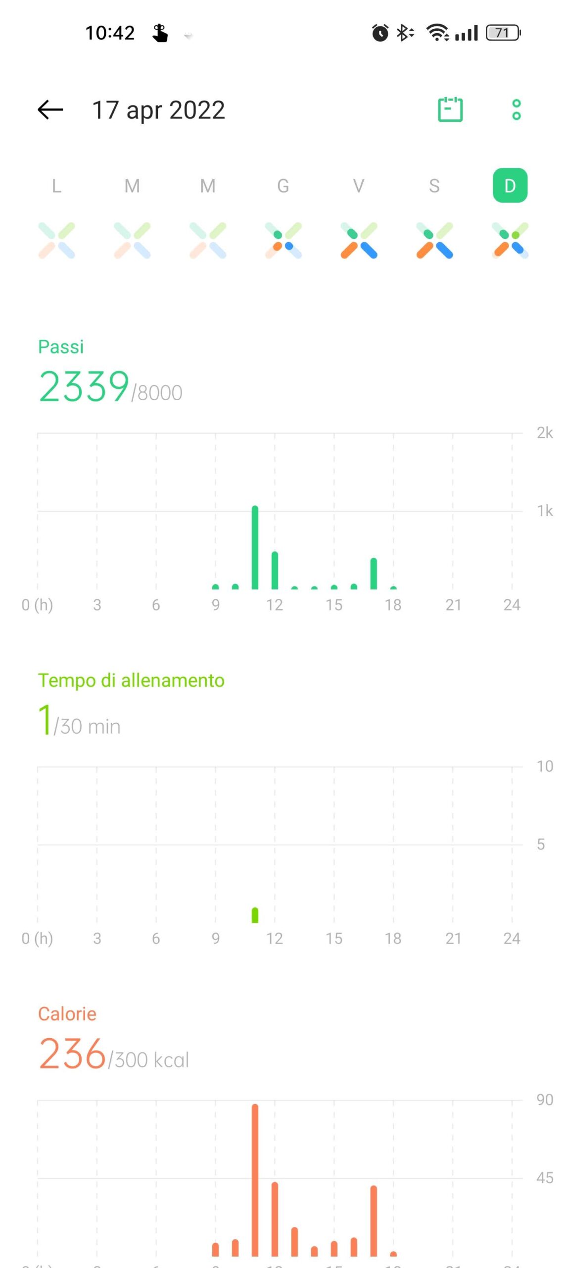 La schermata principale dell’app, così come del quadrante proprietario OPPO, riprende quattro linee colorate, ciascuna delle quali rappresenta un obiettivo quotidiano: passi, calorie, esercizio fisico e numero di attività. Questi quattro dati forniscono la panoramica giornaliera degli obiettivi che l’utente dovrà compiere.