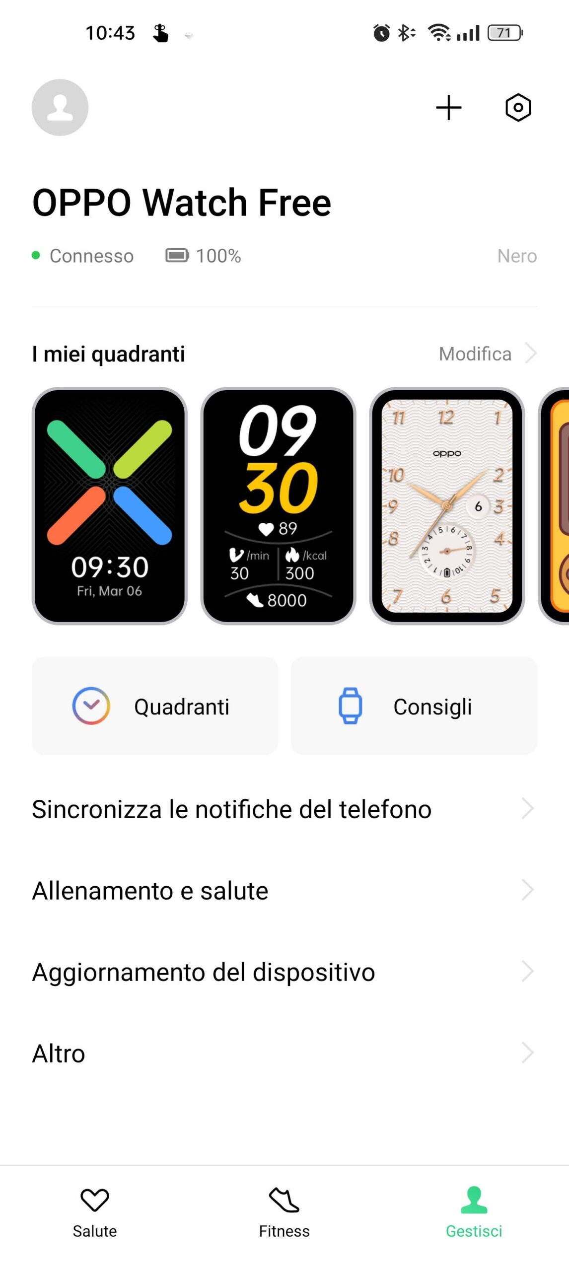 Tanti gli allenamenti di cui è possibile tenere traccia: OPPO Watch Free ha più di 100 modalità di allenamento preimpostate, dal nuoto alla corsa brucia grassi, riconosce automaticamente l’inizio e la fine dell’allenamento e monitora il battito cardiaco e le calorie bruciate durante l’attività sportiva. Non possiamo, però, tacere l’assenza del GPS: per il prezzo di listino, in tutta sincerità, avremmo scommesso sulla sua presenza. Così come risulta assente anche il modulo NFC, che avrebbe trasformato il bracciale anche in un alleato per i pagamenti in mobilità.