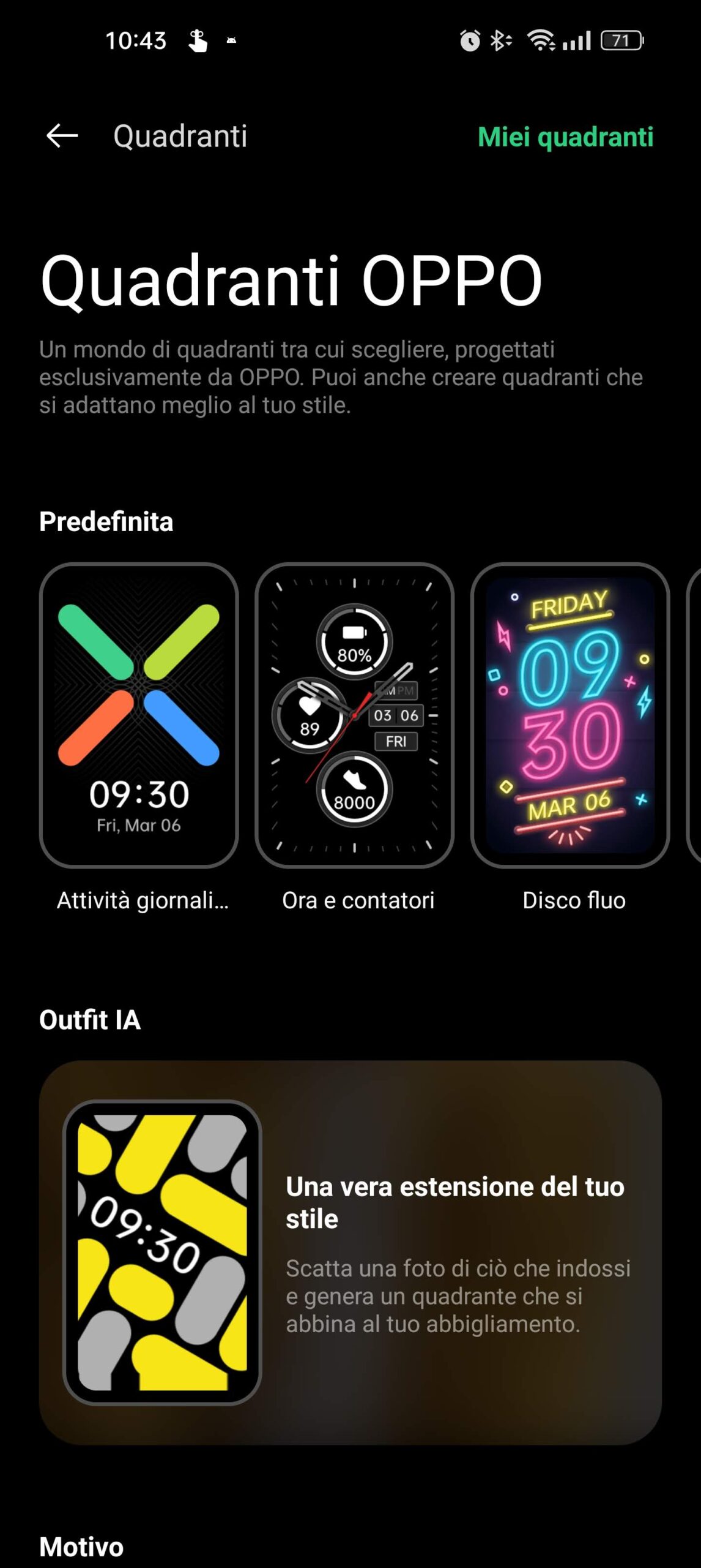 Un plauso va fatto anche alle watch faces presenti. Non sono moltissime, ma sono tutte assolutamente valide, particolari, ben ridefinite e possono adattarsi a qualsiasi situazione. C’è pure la possibilità di creare delle watch faces a seconda del vestiario indossato. In questo caso, scattando una foto con lo smartphone, l’OPPO watch Free crea automaticamente un pattern colorato da impostare come sfondo. Nel nostro caso ha pure funzionato, restituendo veramente una “faccia” adatta ai colori che indossavamo.
