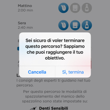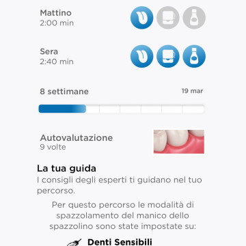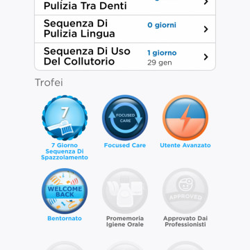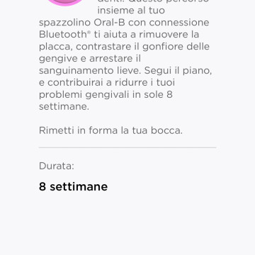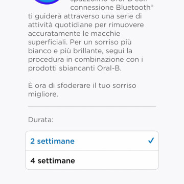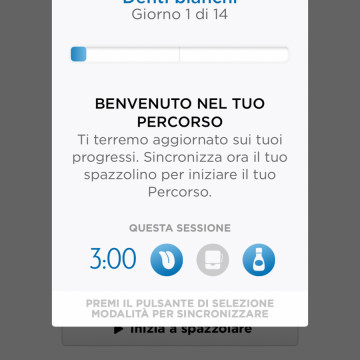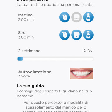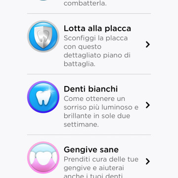 Soltanto attraverso l’applicazione è possibile selezionare uno dei vari percorsi disponibili (Alito fresco, Lotta alla placca, Denti bianchi, Gengive sane, Cura dell’apparecchio) che prevedono durate, spazzolini e modalità di spazzolamento differenti.