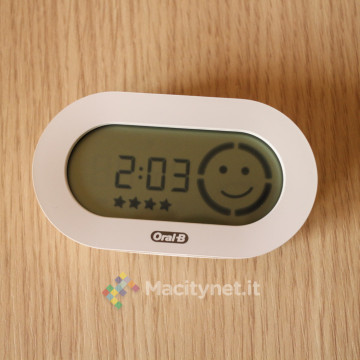 Per chi come chi scrive è abituato a lavarsi i denti troppo rapidamente, già soltanto questo accessorio si è rivelato molto comodo in quanto permette di tenere sotto controllo l’effettiva durata del lavaggio.