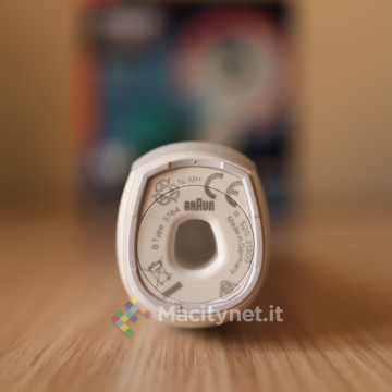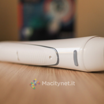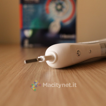 Un’ultima caratteristica che abbiamo apprezzato nell’uso dello spazzolino di Oral-B sia in modalità “indipendente”, sia in quella combinata allo smartphone, è la segnalazione luminosa posta sul retro del manico.