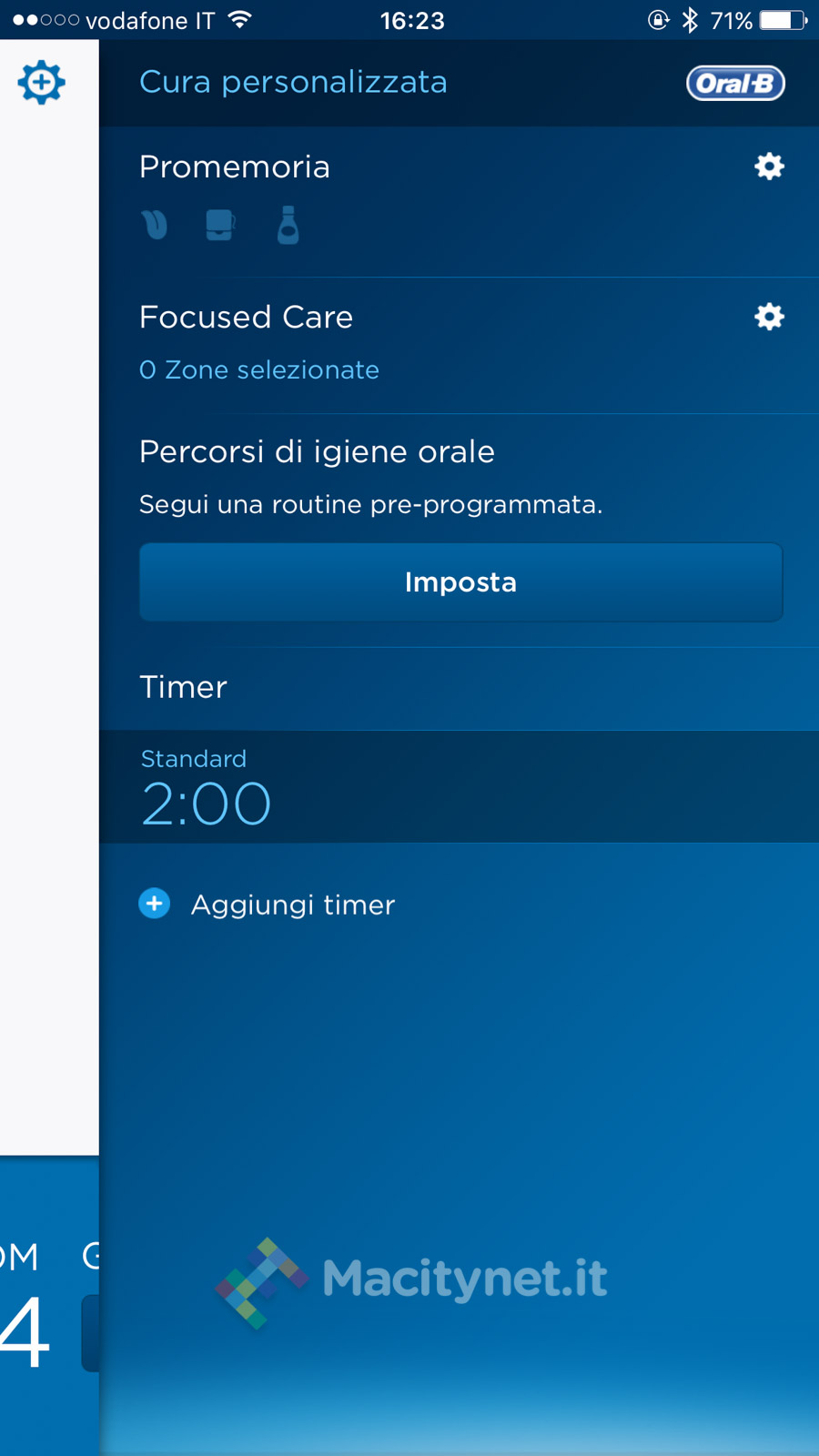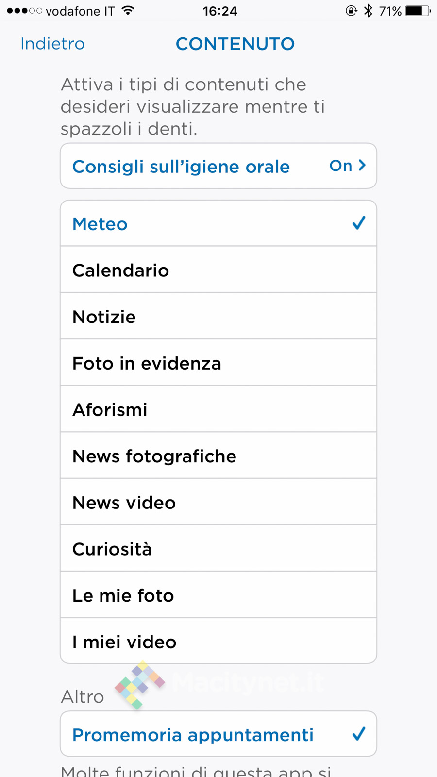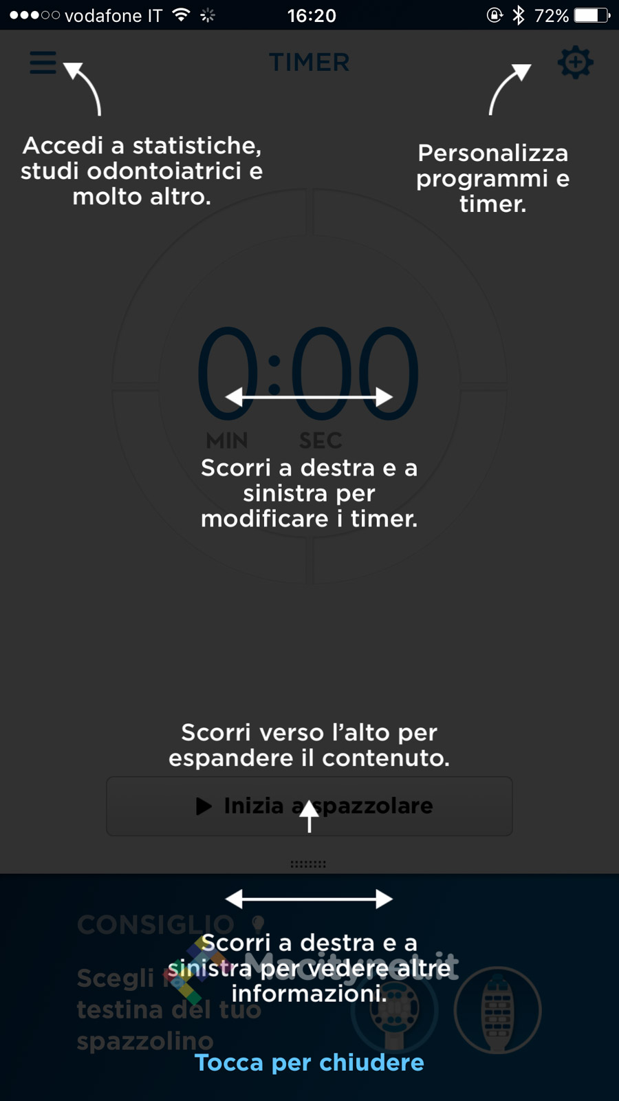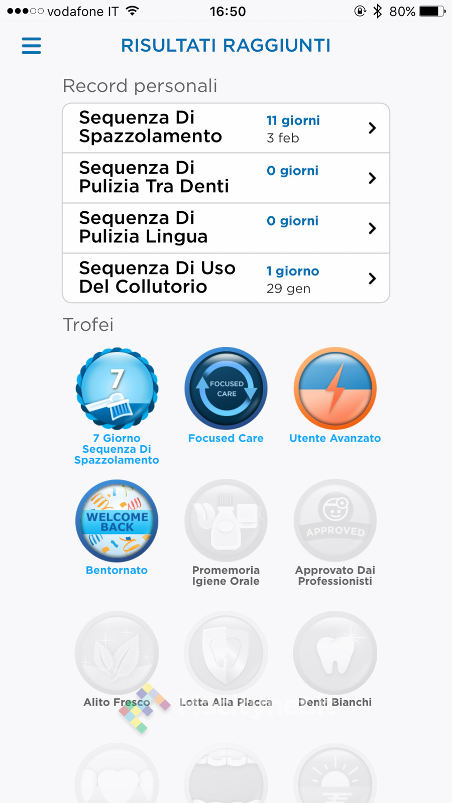 Soltanto attraverso l’applicazione è possibile selezionare uno dei vari percorsi disponibili (Alito fresco, Lotta alla placca, Denti bianchi, Gengive sane, Cura dell’apparecchio) che prevedono durate, spazzolini e modalità di spazzolamento differenti.
