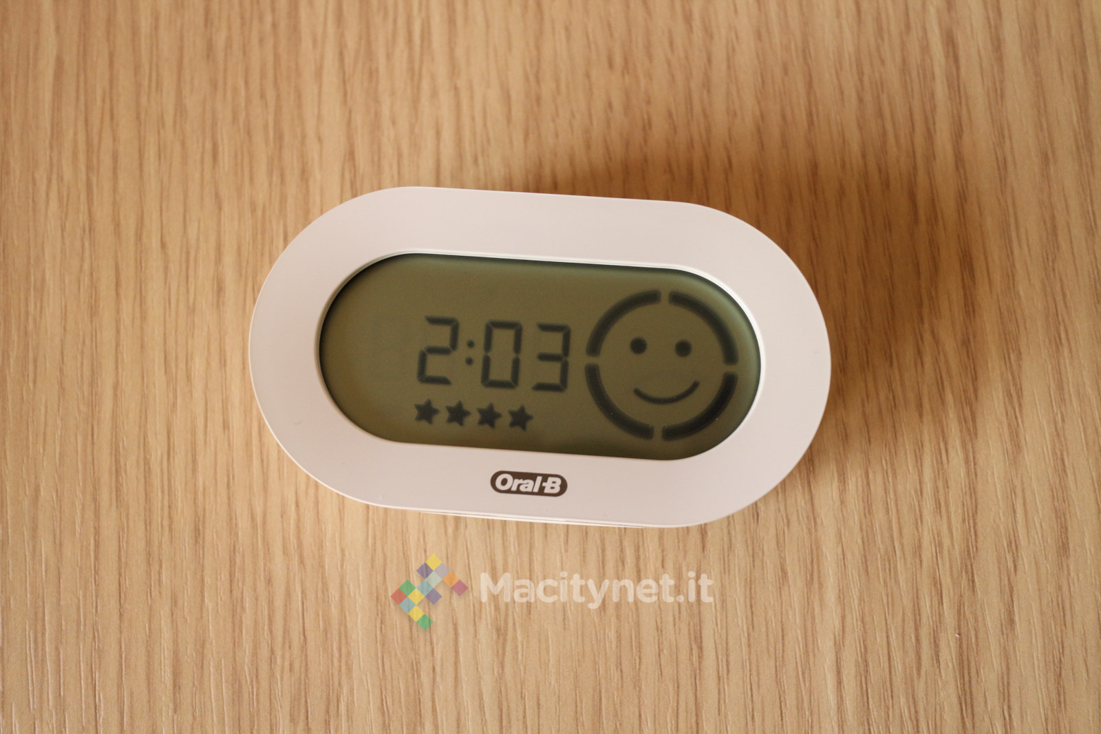 Per chi come chi scrive è abituato a lavarsi i denti troppo rapidamente, già soltanto questo accessorio si è rivelato molto comodo in quanto permette di tenere sotto controllo l’effettiva durata del lavaggio.