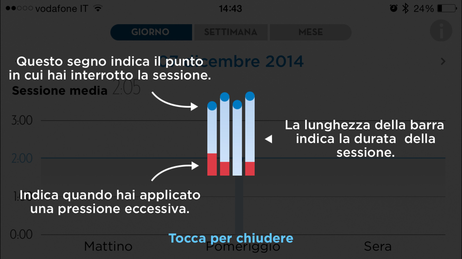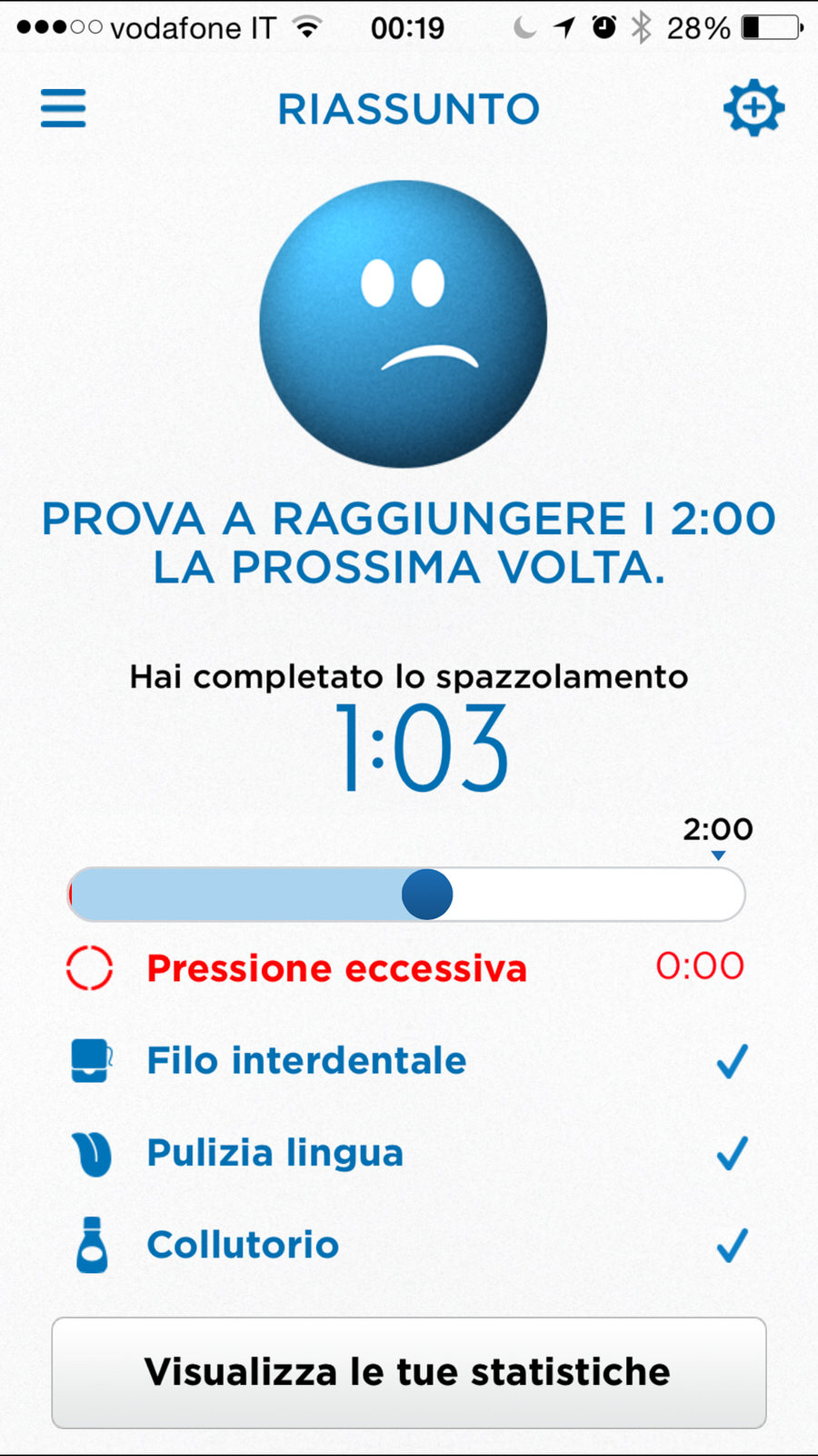 Complessivamente l’applicazione è ben sviluppata (anche se sul nostro iPhone 6 plus ha manifestato qualche problema a rilevare il touch nella parte alta sinistra dello schermo) ed è anche ben tradotta in Italiano; soprattutto è effettivamente un sistema di incentivazione, prima che di mera registrazione statistica, alla pulizia dentale.