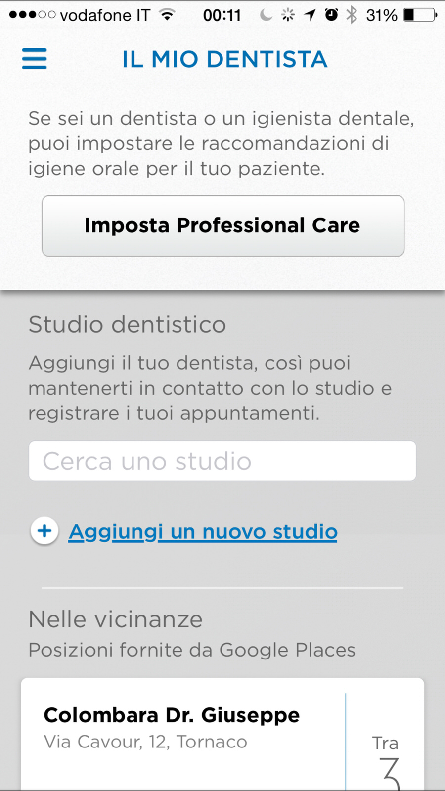 Oltre a questo l’applicazione ci localizza e ci fornisce una lista di dentisti nella zona (quelli che si trovano in Google Places) da aggiungere alla lista di professionisti dell’igiene dentale. Non mancano consigli sulla igiene orale, un link al negozio Oral-B e un sistema per ricordarci di cambiare le testine dello spazzolino.