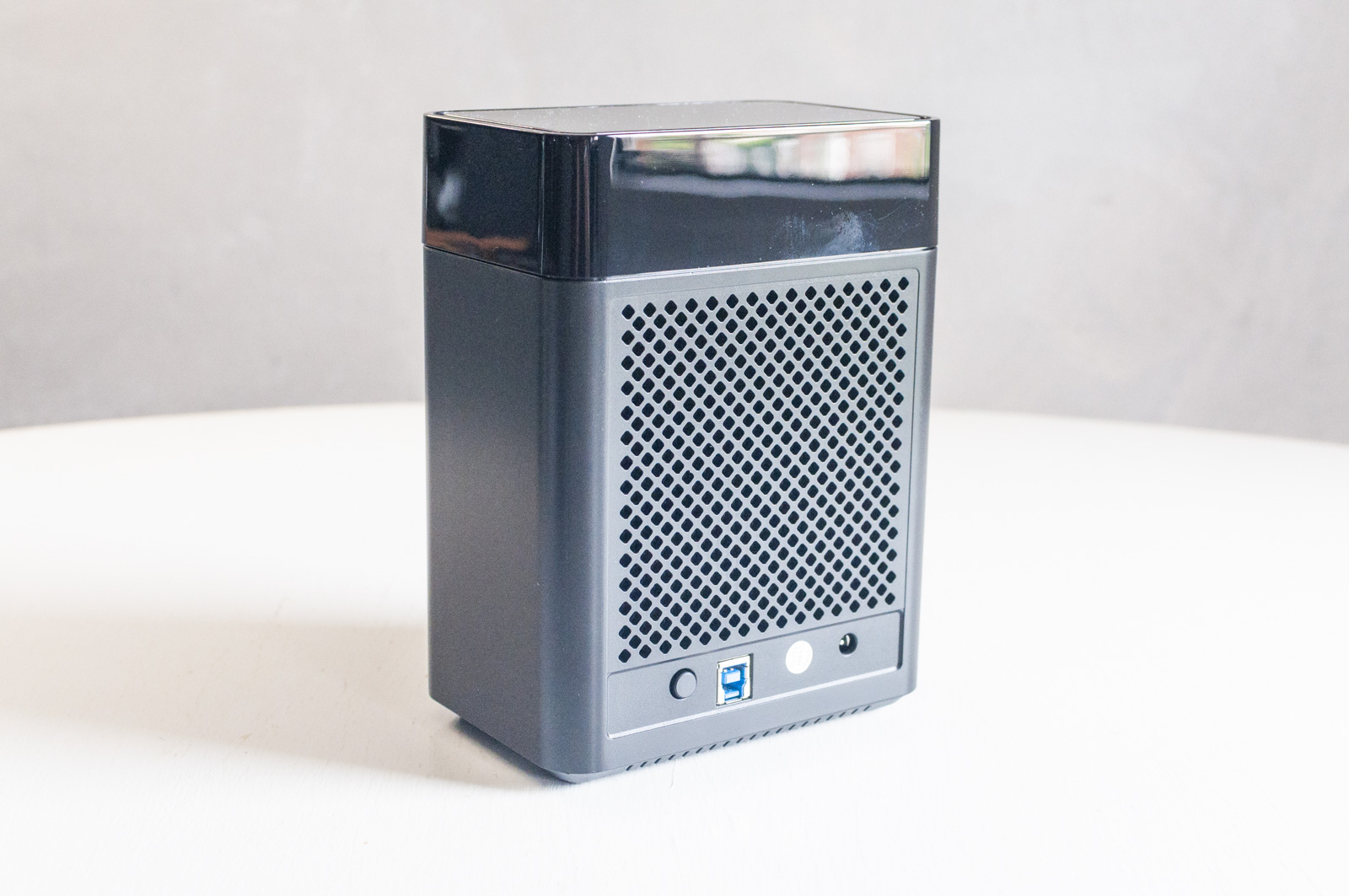 Esteticamente si tratta di un case in plastica nera opaca, tranne la parte superiore che è tutta lucida (ma sempre nera). Frontalmente trovano posto tre piccoli LED che indicano il funzionamento mentre nella parte posteriore trova posto il connettore USB-B, l’alimentazione e il pulsante d’accensione, appena sotto alla griglia di raffreddamento.