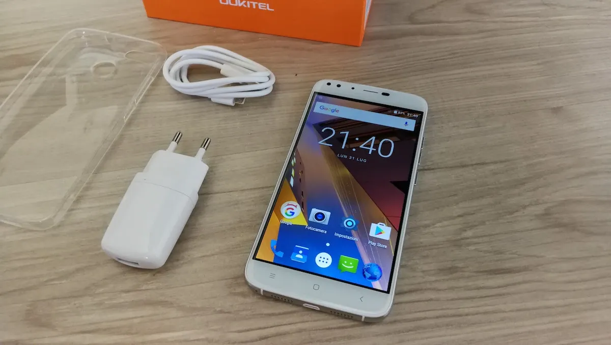 Al di là dell’estetica del terminale, che comunque non dispiace anche in considerazione del basso costo del dispositivo, è un po il peso ad appesantire la tasca dei pantaloni. Oukitel U22 misura infatti 76 x 154.2 x 9.6 mm, per 187 grammi: sono tanti, anche in rapporto alla batteria, da appena 2700 mAh. A livello di caratteristiche tecniche Oukitel U22 fa affidamento su una CPU Mediatek MT6580A Quad-Core a 1.3 GHz Cortex-A7, GPU Mali-400, il tutto coadiuvato da 2GB di RA e 16 GB di memoria integrata. Lo schermo si giova di un pannello IPS da 5,5 pollici con risoluzione HD. Non è tra i migliori, considerando che la griglia dei pixel è alquanto visibile ad un occhio allenato e che sotto la luce diretta del sole non risulta molto leggibile. I colori sono comunque buoni ed è piacevole in zone al chiuso, comunque non direttamente illuminate da fonti di luce. Si tratta di una configurazione non al top, ma che è in linea con il prezzo di 79 euro al quale lo si trova su Amazon, che scende a 65 euro se ci si rivolge a siti cinesi, come GearBest.