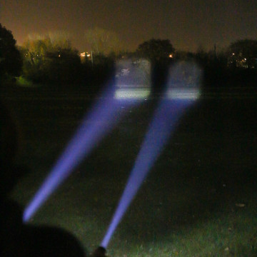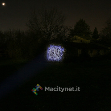 Lo dimostrano le nostre prove dove, stringendo il cono al massimo delle possibilità, si può addirittura illuminare perfettamente un’area di circa 3 x 3 metri a circa 10-15 metri di distanza. Se ci si spinge oltre nelle distanze, con il cono concentrato si può certamente individuare e riconoscere anche soggetti piccoli.