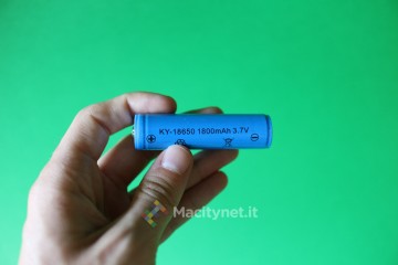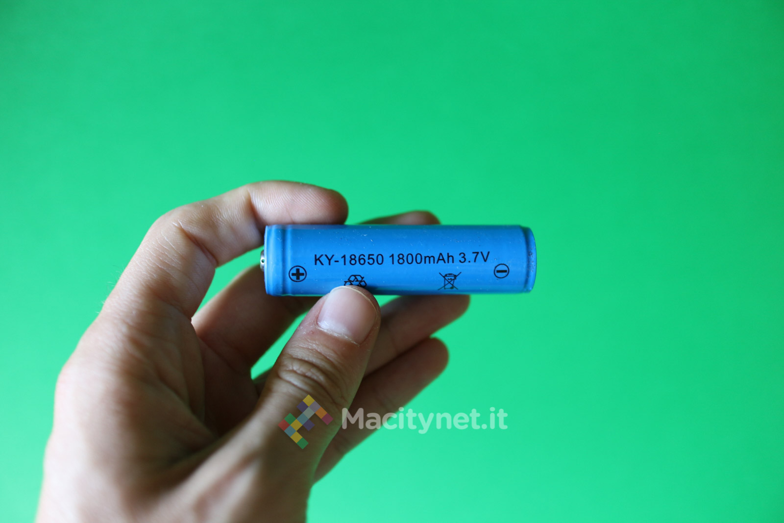 - batteria 18650 e adattatore per batterie AAA inclusi