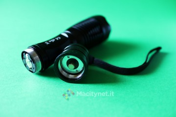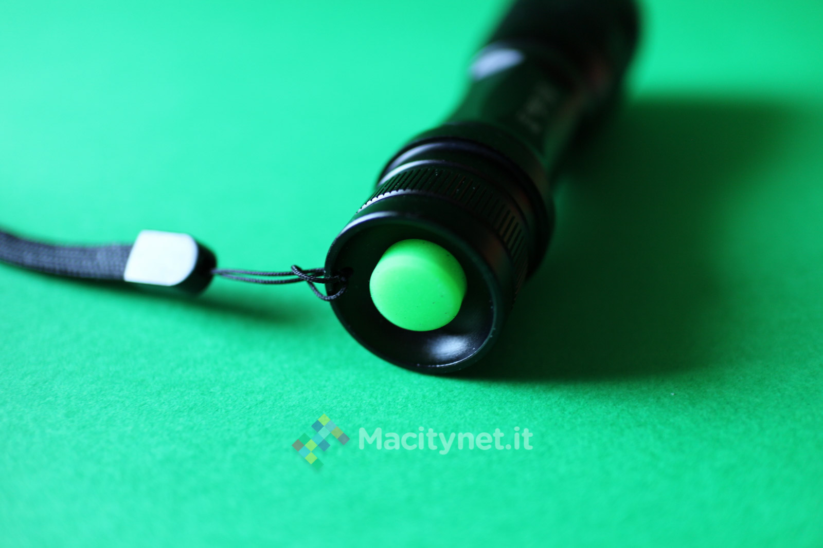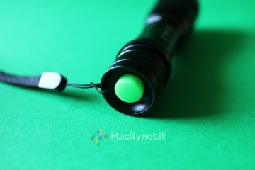 Ci è piaciuta la scelta di poter agganciare un laccio (incluso nella confezione) per assicurarla al polso, o eventualmente allo spallaccio o al passante dei pantaloni. Buona la presa, migliorata dalla spigolatura del manico e dalla seghettatura della parte superiore che può essere “allungata” per cambiare la tipologia di fascio luminoso.