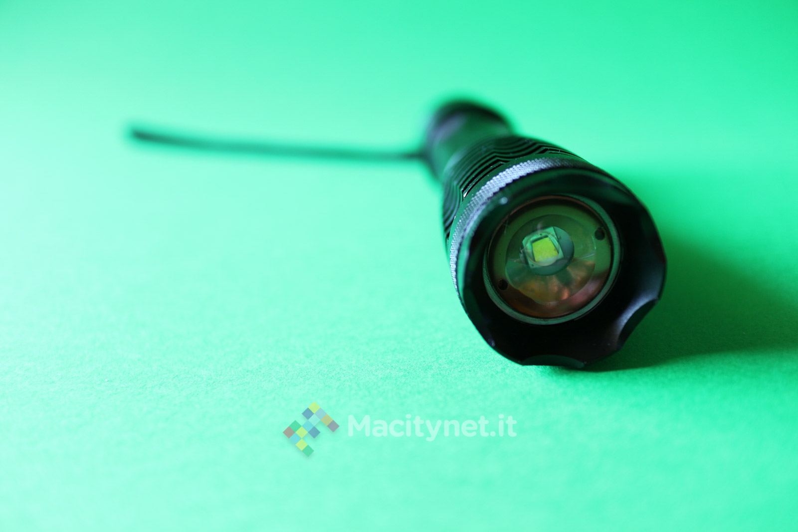 Parlare di funzionamento per una torcia può sembrare banale, in realtà l’esiguo manuale utente non spiega come in effetti si debba procedere per passare attraverso le cinque diverse modalità di illuminazione. Se infatti premendo il bottone sul retro a fine corsa si può, al click, accendere o spegnere la torcia, premendolo “a metà”, poco più che sfiorandolo, si passa dalla luce forte ad una media ed una terza debole. Arrivano poi la modalità strobo (un lampeggio molto veloce) ed SOS, utile per segnalare situazioni di emergenza lasciando fare tutto alla torcia. Continuando con lo sfioramento, il ciclo ricomincia da capo.