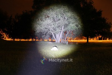 Da appassionati di fotografia notturna, ce la siamo subito portata nelle escursioni delle scorse settimane. Qui abbiamo realmente apprezzato la bontà del prodotto in quanto, se durante l’unboxing in casa aveva già dato la dimostrazione di emettere una luce molto forte grazie ai suoi 500 lumen, all’aperto abbiamo capito cosa ciò realmente significhi per chi si trova in montagna dopo le 10 sera immerso praticamente nel buio pesto (o con un minimo di luce nei periodi di Luna piena). A piena potenza, si è praticamente in grado di illuminare “a giorno” un albero a 50 metri di distanza, anche con il fascio di luce più ampio. La stessa illuminazione, come dimostrato nella galleria fotografica che segue, si ottiene stringendo il fascio al massimo e puntandolo ad un altro albero distante all’incirca 120-150 metri.