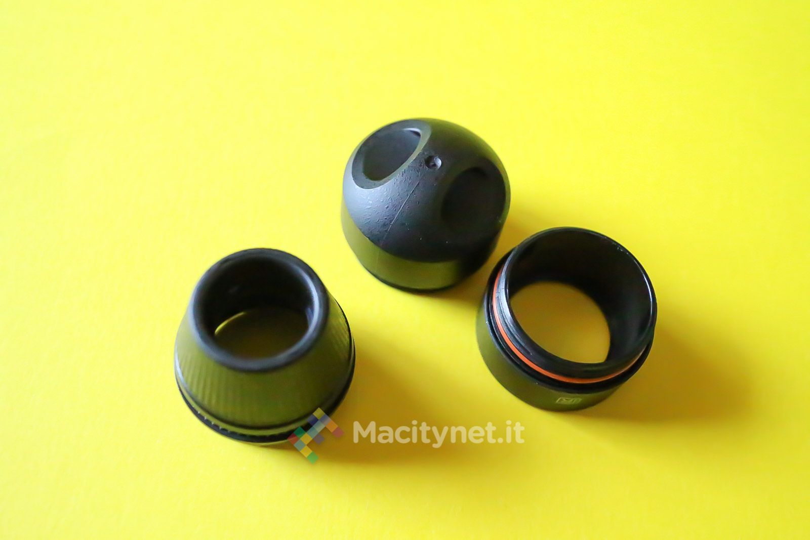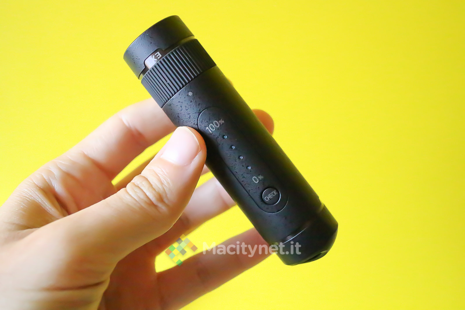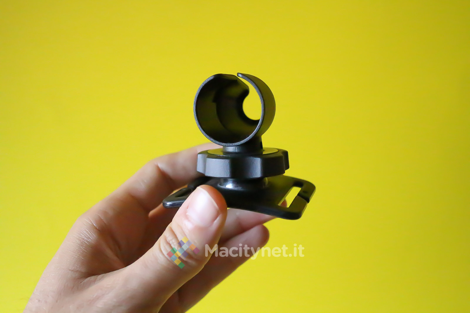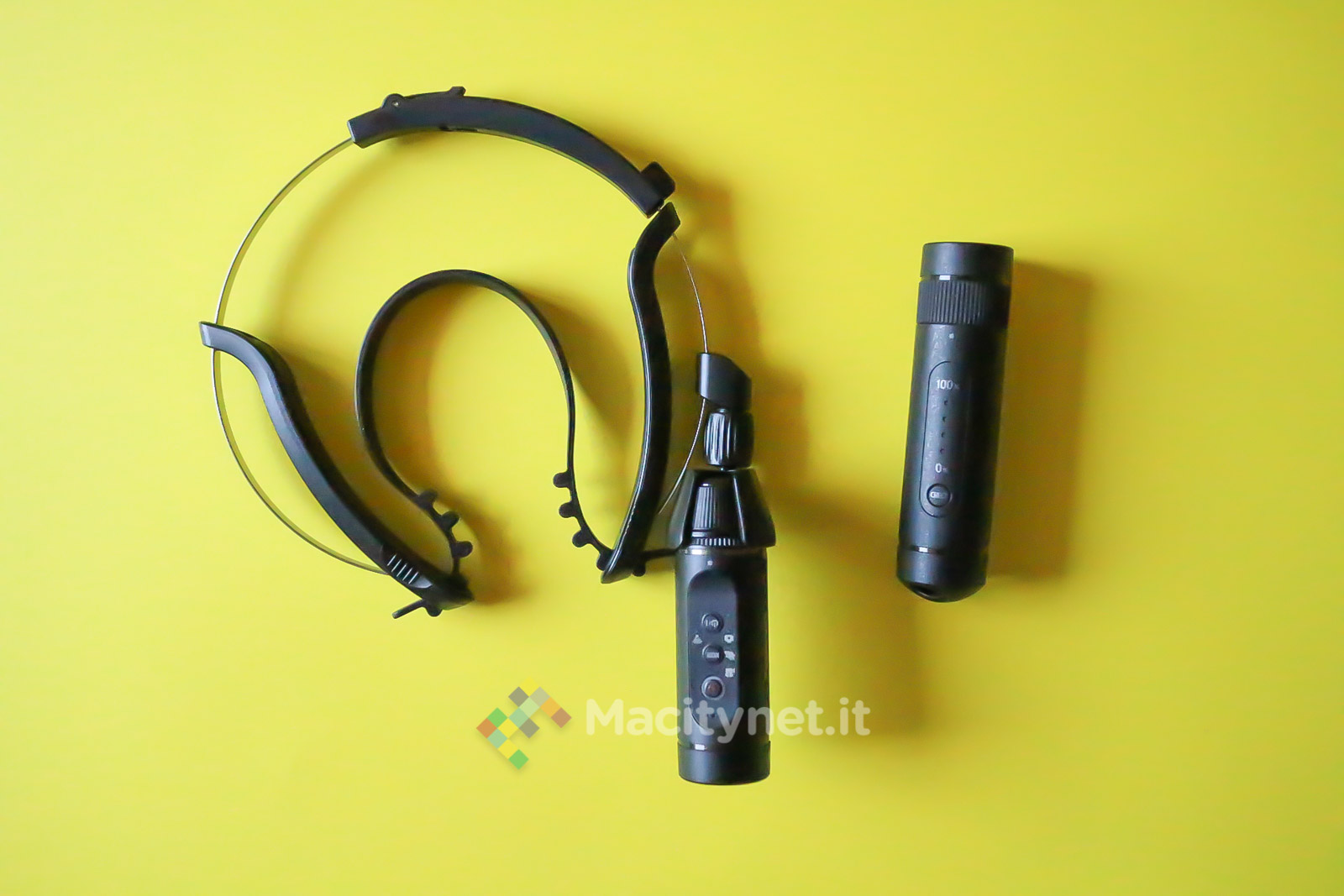 Tutto insomma è a vantaggio dell’utente che avrà una action camera Full HD in grado di riprendere a 1080p e 30 fps o 720p a 60 fps sufficientemente piccola, leggera e facile da agganciare dove si vuole attraverso i vari accessori acquistabili separatamente. Oltre ad usarla con la corona sul capo c’è infatti il supporto per agganciarla allo spallaccio dello zaino, al casco o al manubrio, così come una pratica batteria d’emergenza da 720 mAh per aumentare le ore di registrazione o semplicemente per ricaricarla quando scarica.