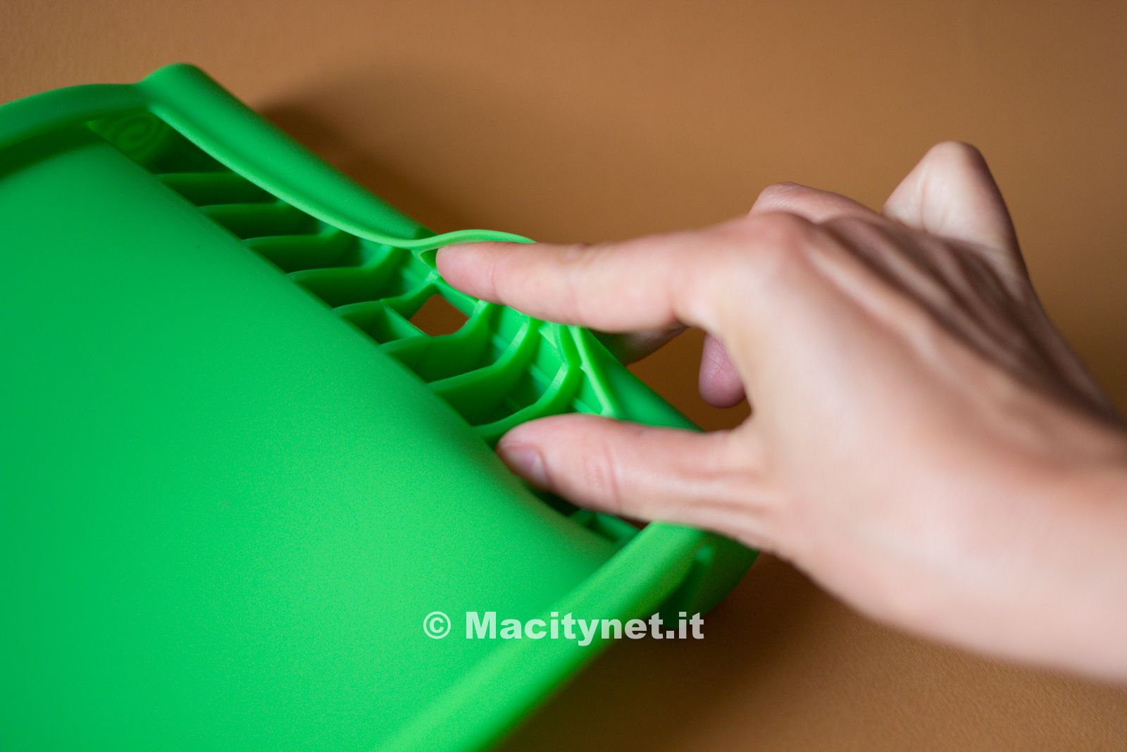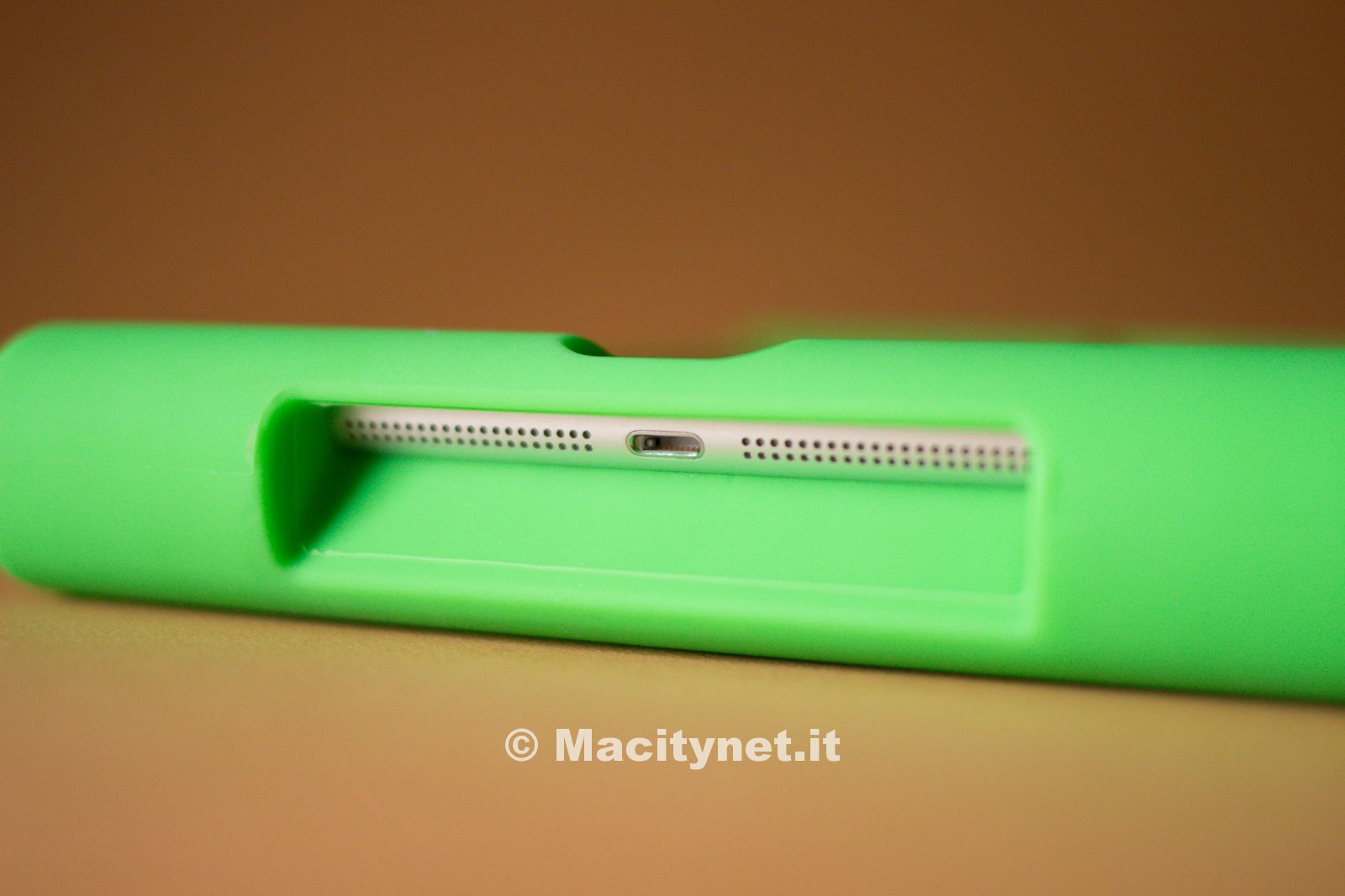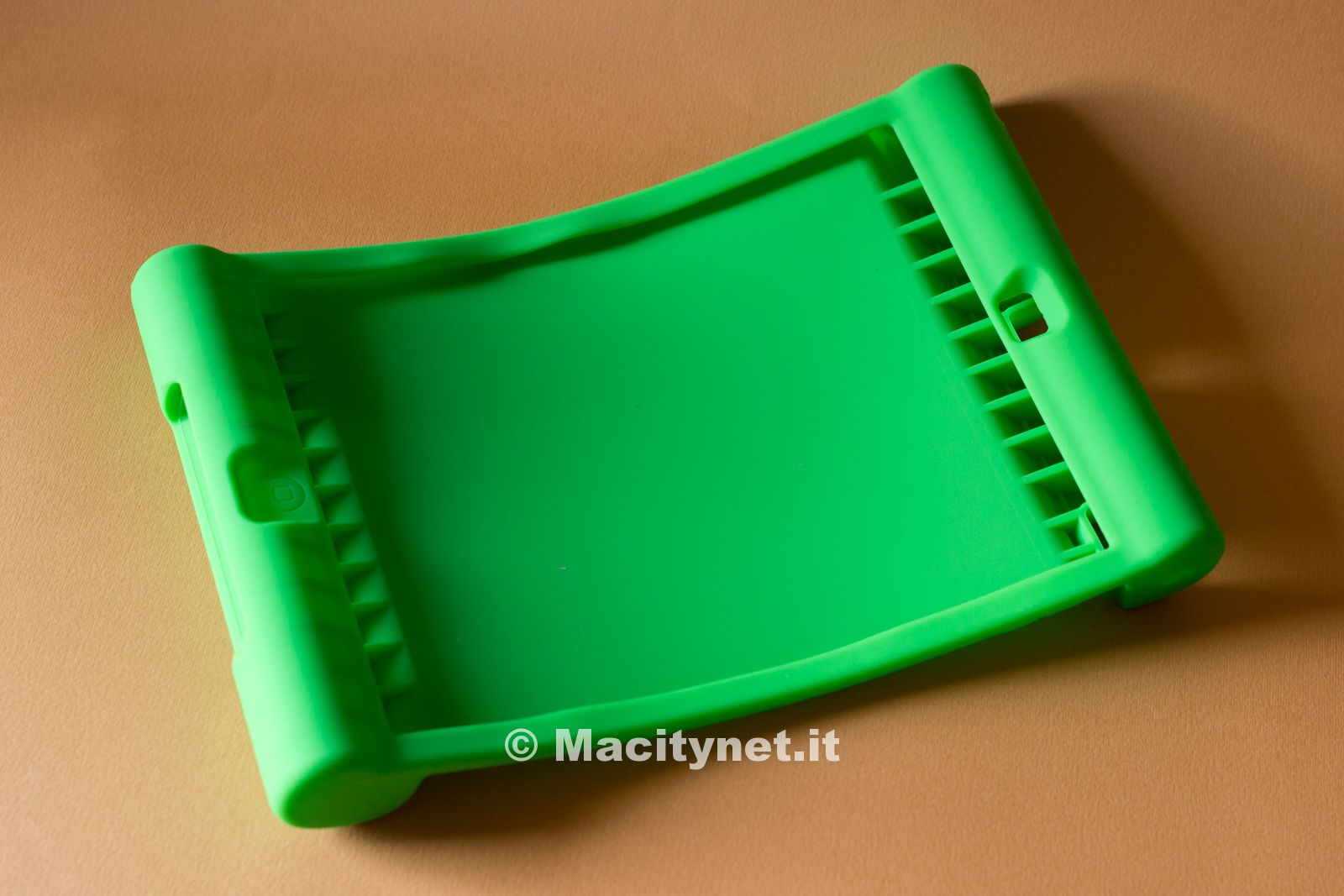 Una volta convinto il nostro “collaboratore” a cederci, l’iPad, abbiamo provato a far cadere il tablet da circa 30 centimetri di altezza su una superficie dura e piana sia con il display rivolto verso il basso che viceversa: in entrambi i casi si avranno dei piccoli rimbalzi senza che l’iPad abbia un contatto diretto. Il silicone è morbido e resiste anche ai morsi, come potete notare dalla nostra galleria, in quanto si tratta di un materiale eccezionalmente elastico ed impossibile da strappare o danneggiare. I fori in prossimità dei connettori facilitano l’inserimento del cavo per la ricarica così come quello per le cuffie, anche quando si tratta di accessori esterni caratterizzati magari da uno spinotto leggermente più ingombrante.