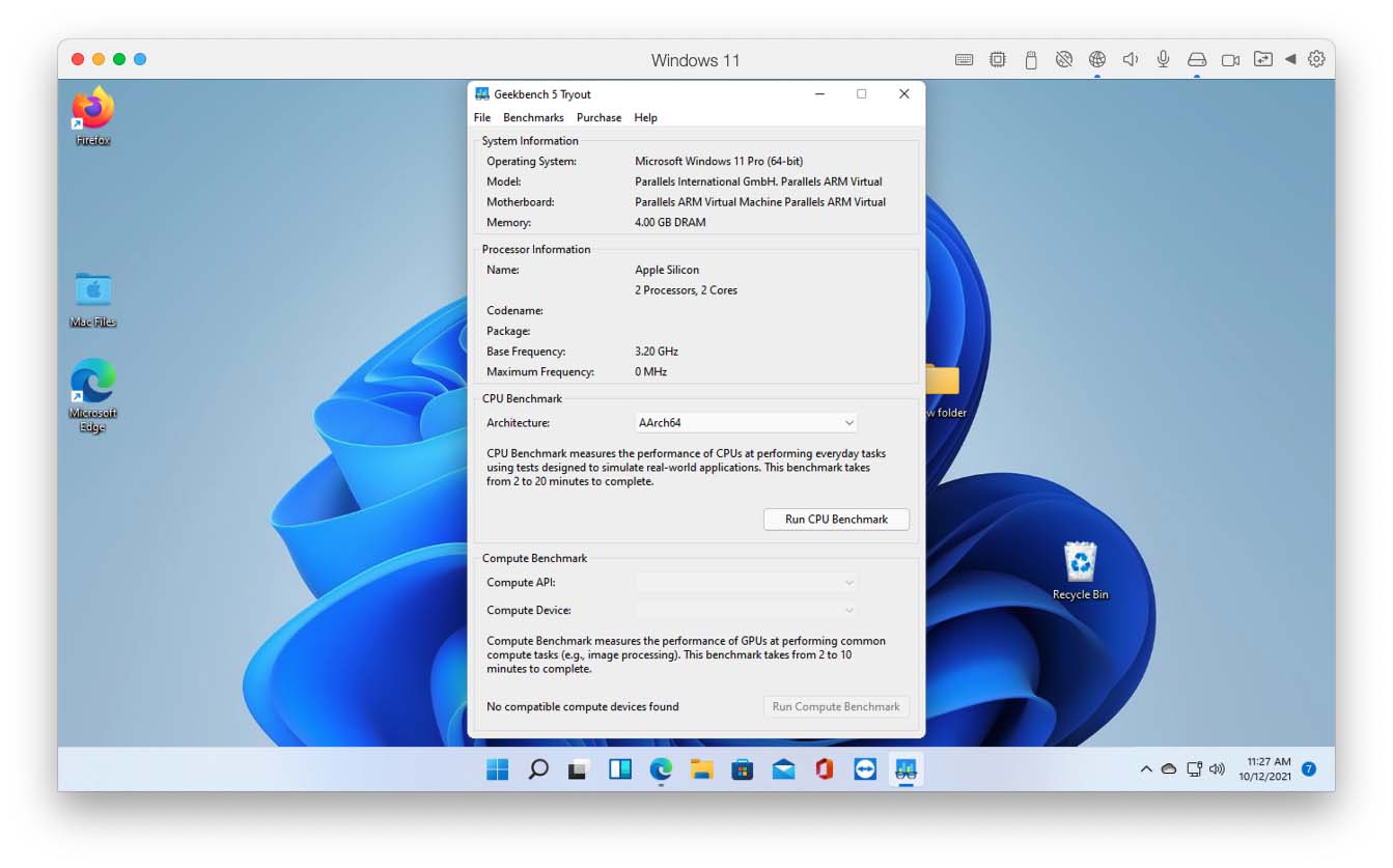 Su un Mac mini 2019 con processore a 3 GHz Intel Core i5 con 6 core, Parallels Desktop 17 è riuscito a gestire due distribuzioni di Linux (Fedora e Mint), una copia di Windows 11, due copie di Windows 10 e una di Windows 7 contemporaneamente, con il sistema operativo principale impegnato in una copia di Backup (su più dischi).