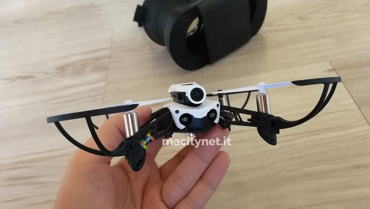 La prima sensazione che si ha è quella di un drone estremamente piccolo e leggero, ma davvero ben costruito, solido e robusto. Può sembrare strano considerando le piccole dimensioni del drone, ma il Mambo FPV è davvero ben costruito. Pesa pochissimi grammi, e si trasporta facilmente, considerando le dimensioni davvero ridotte.