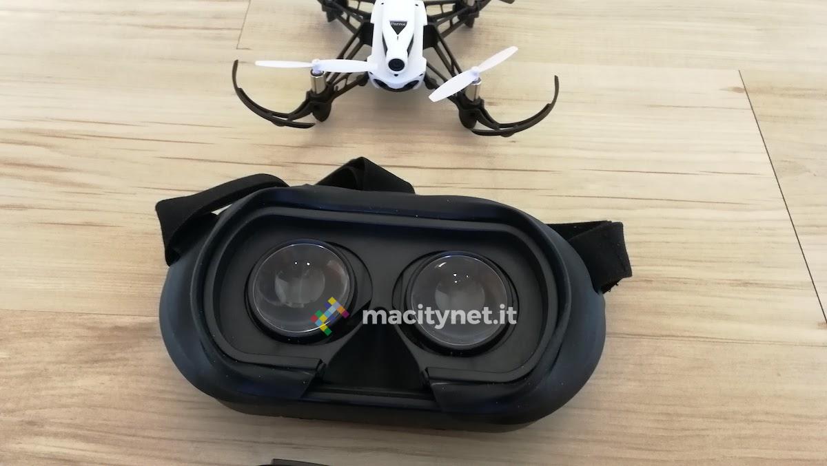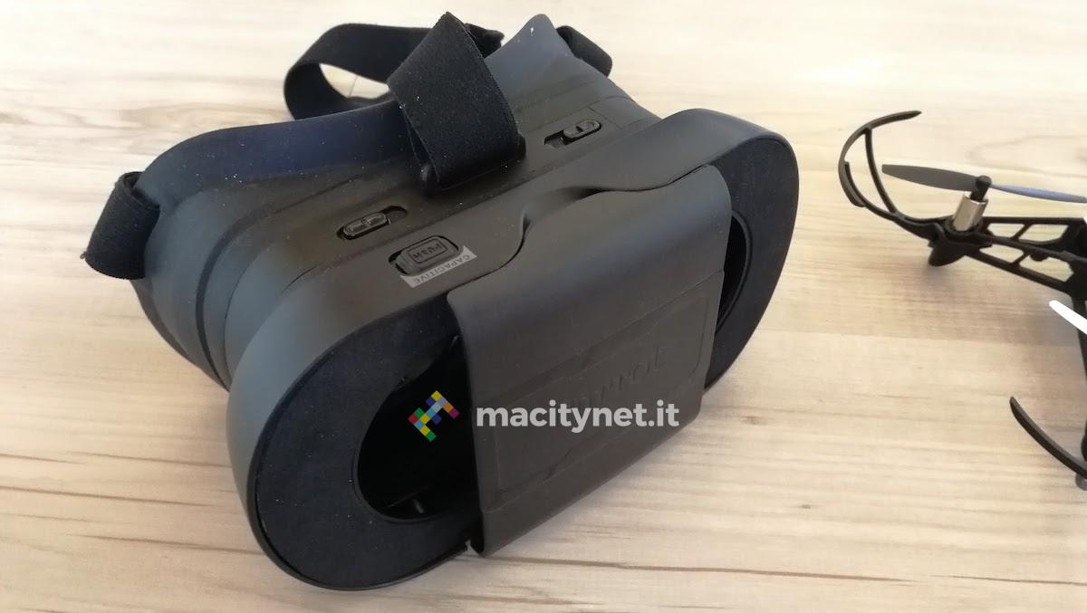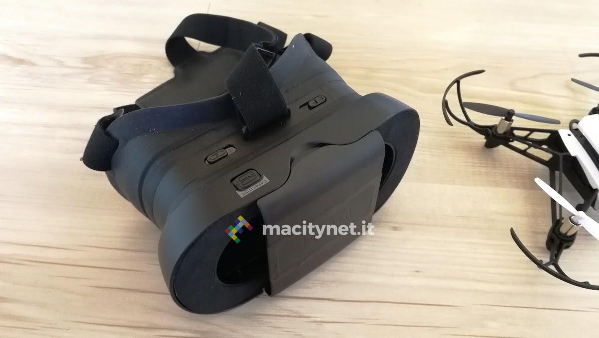 Ed infatti, all’interno della confezione è presente un visore, all’interno del quale alloggiare, appunto, lo smartphone. E’ questo l’utilizzo corretto del drone in prova: pad alla mano, drone in volo, visore con smartphone sul volto. La qualità del volo FPV, naturalmente, viene anche influenzata dallo smartphone utilizzato.