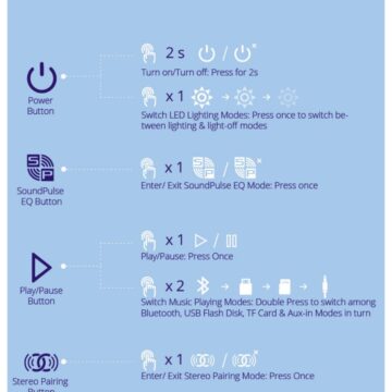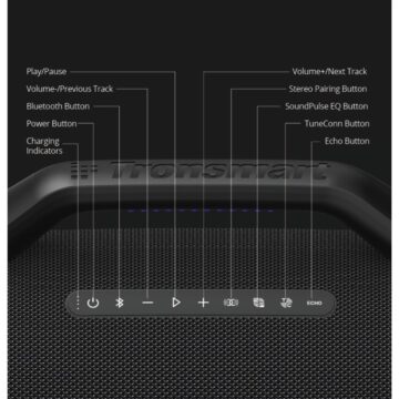 Un prodotto nella tradizione di Tronsmart dal prezzo accessibile e dalla prestazioni sopra la media con una versatilità eccellente. Un regalo da fare o da farsi per animare feste tra amici in qualunque situazione o per servirsene come sistema di servizio in occasioni pubbliche con un audience di 20-30 persone anche all’aperto. L’illuminazione LED aggiunge un del brio alla presenza scenica e lo rende uno strumento di divertimento anche a chi si diverte a ballare e cantare nella propria stanza che sarà riempita dalla musica del party-boom-box di Tronsmart.