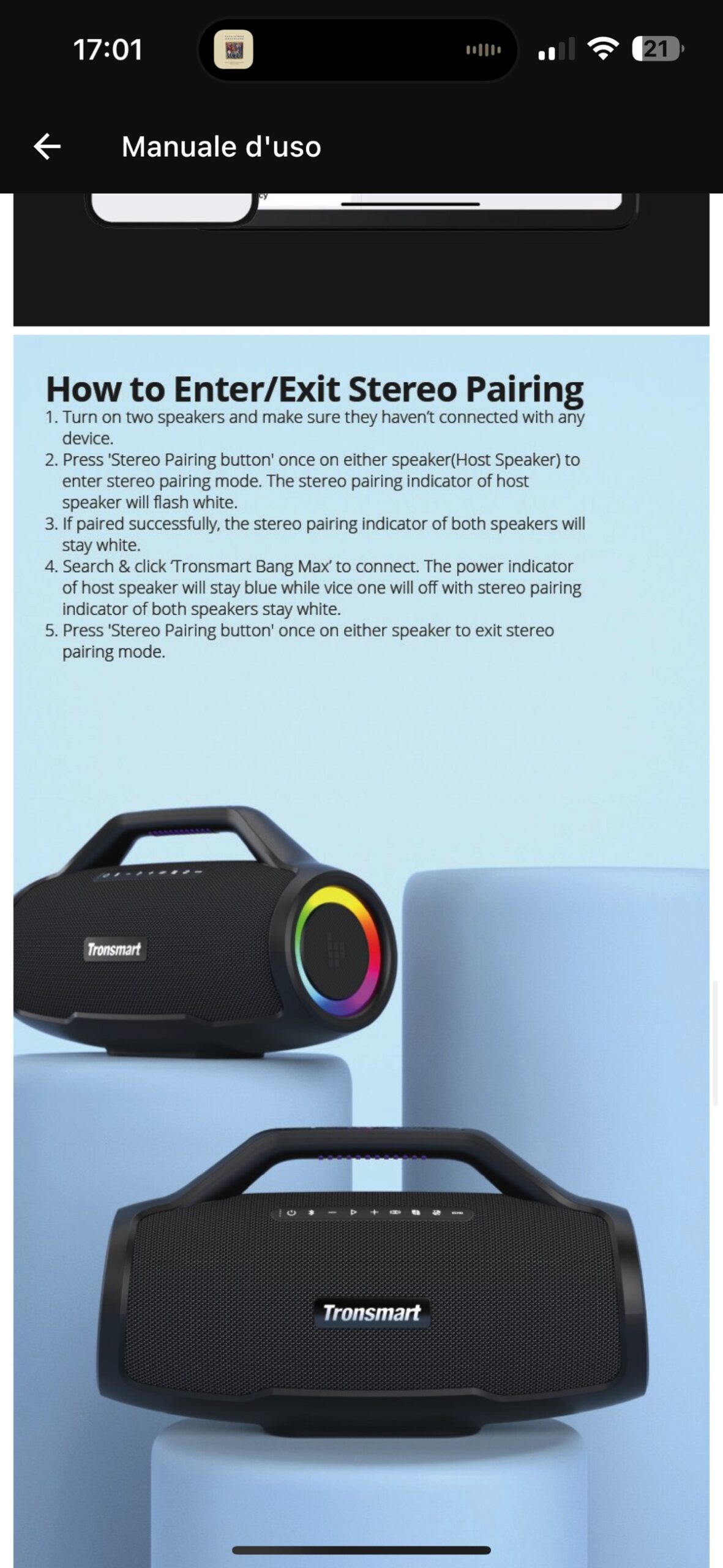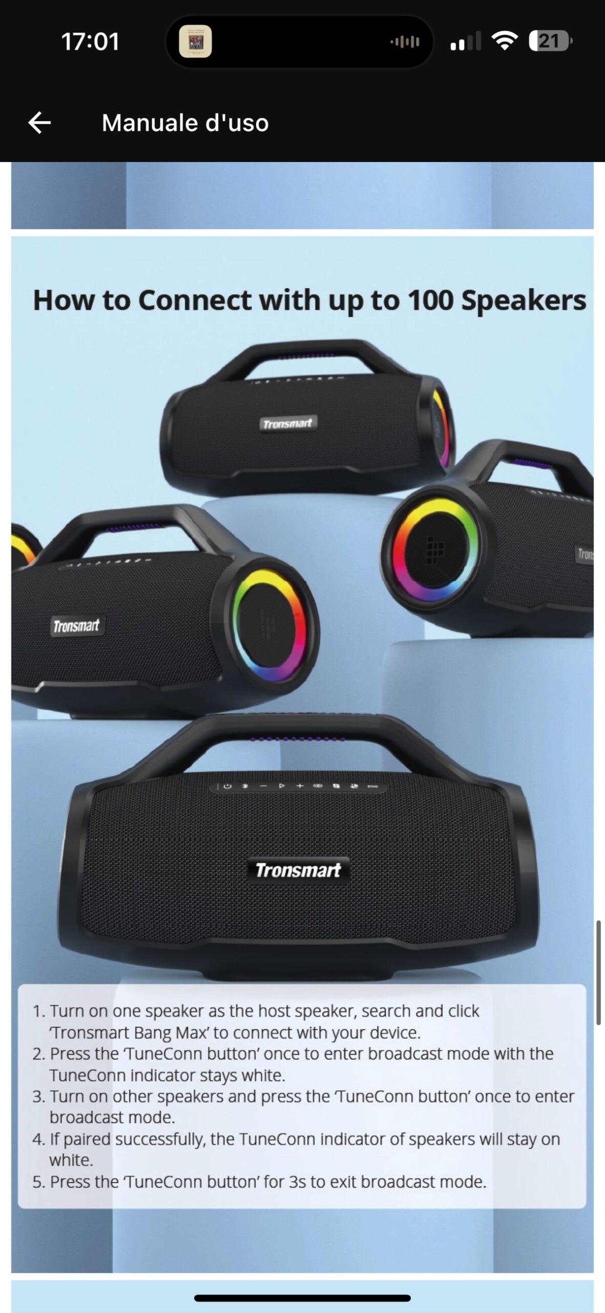 E’ da notare che Tronsmart si è presa la briga di tradurre in italiano (anco non perfetto l’app) testimoniando quanto ci tiene al nostro mercato. Speriamo che anche il booklet interno sia tradotto nella nostra lingua almeno nella versione che vedete sopra gestita dall’app.