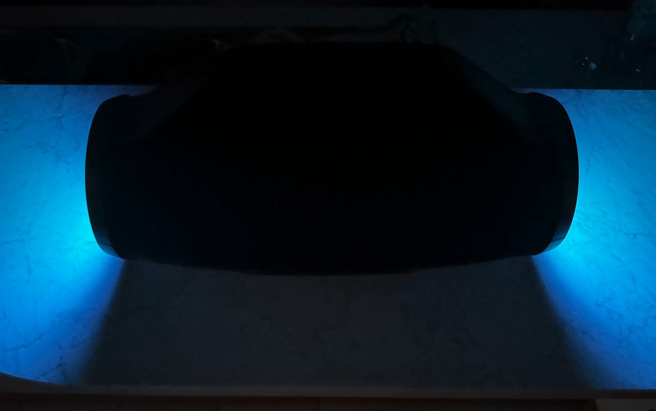 I 6 speaker frontali sono celati dietro la griglia e come detto sul fianco troviamo i due radiatori passivi dei bassi circondati da una illuminazione led con 3 modalità che accompagnano la musica senza possibilità di regolazione della luminosità tranne ovviamente lo spegnimento.