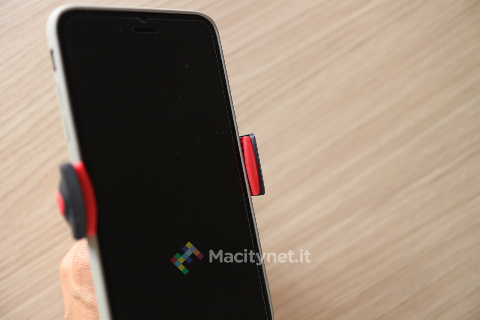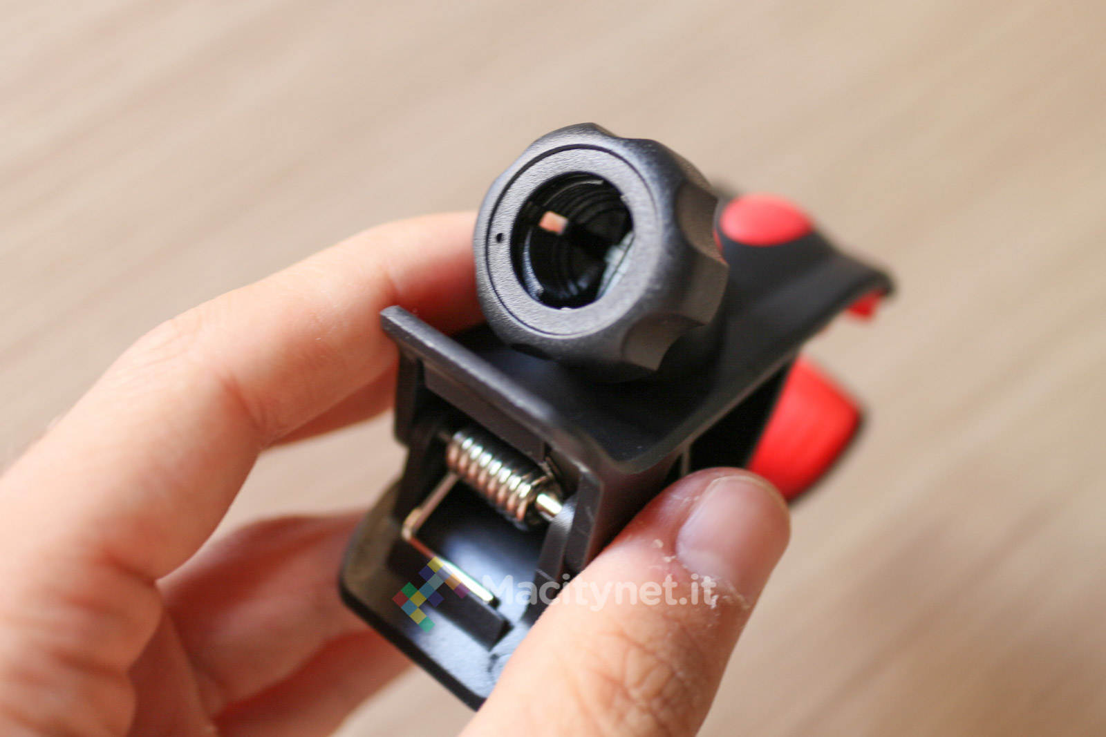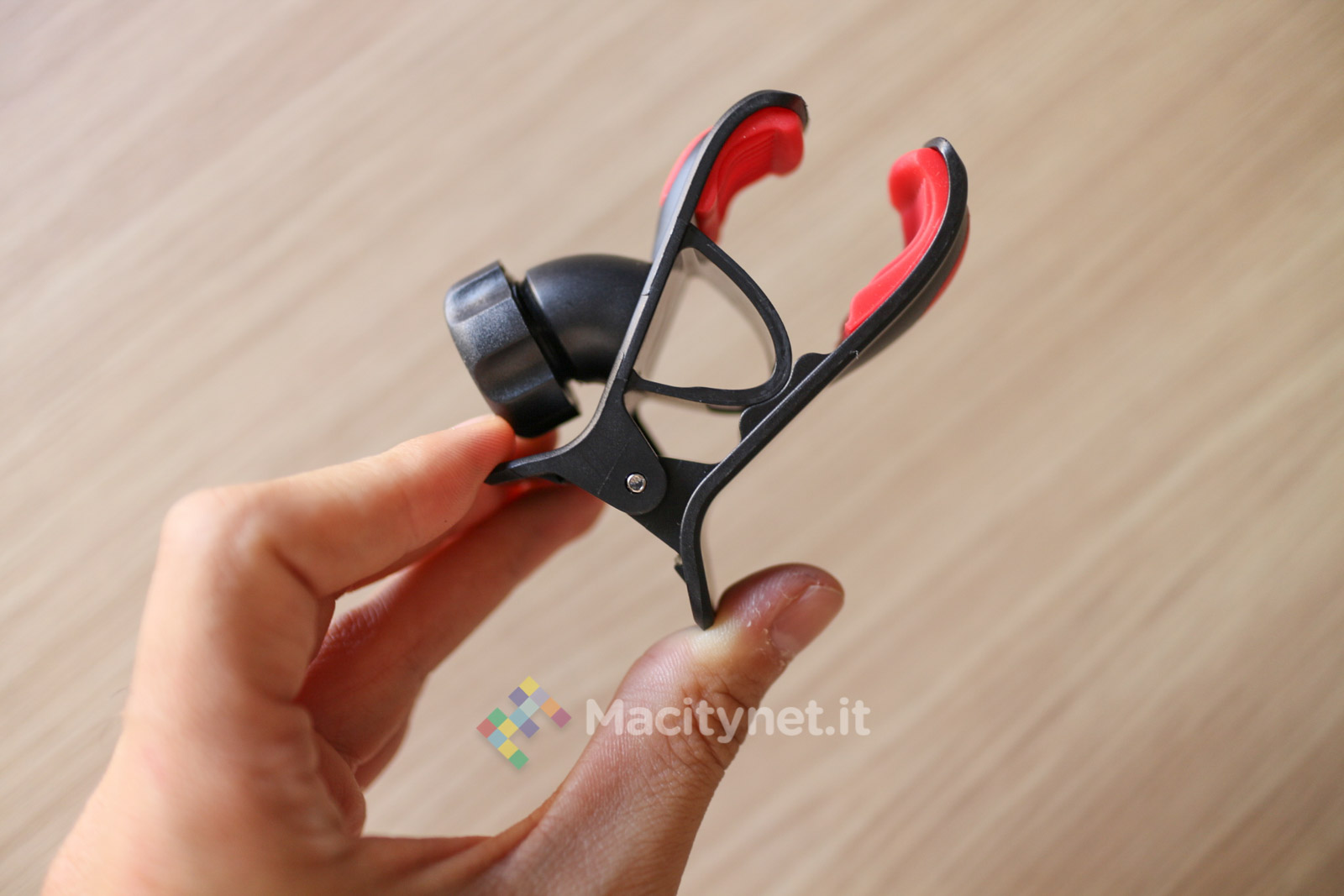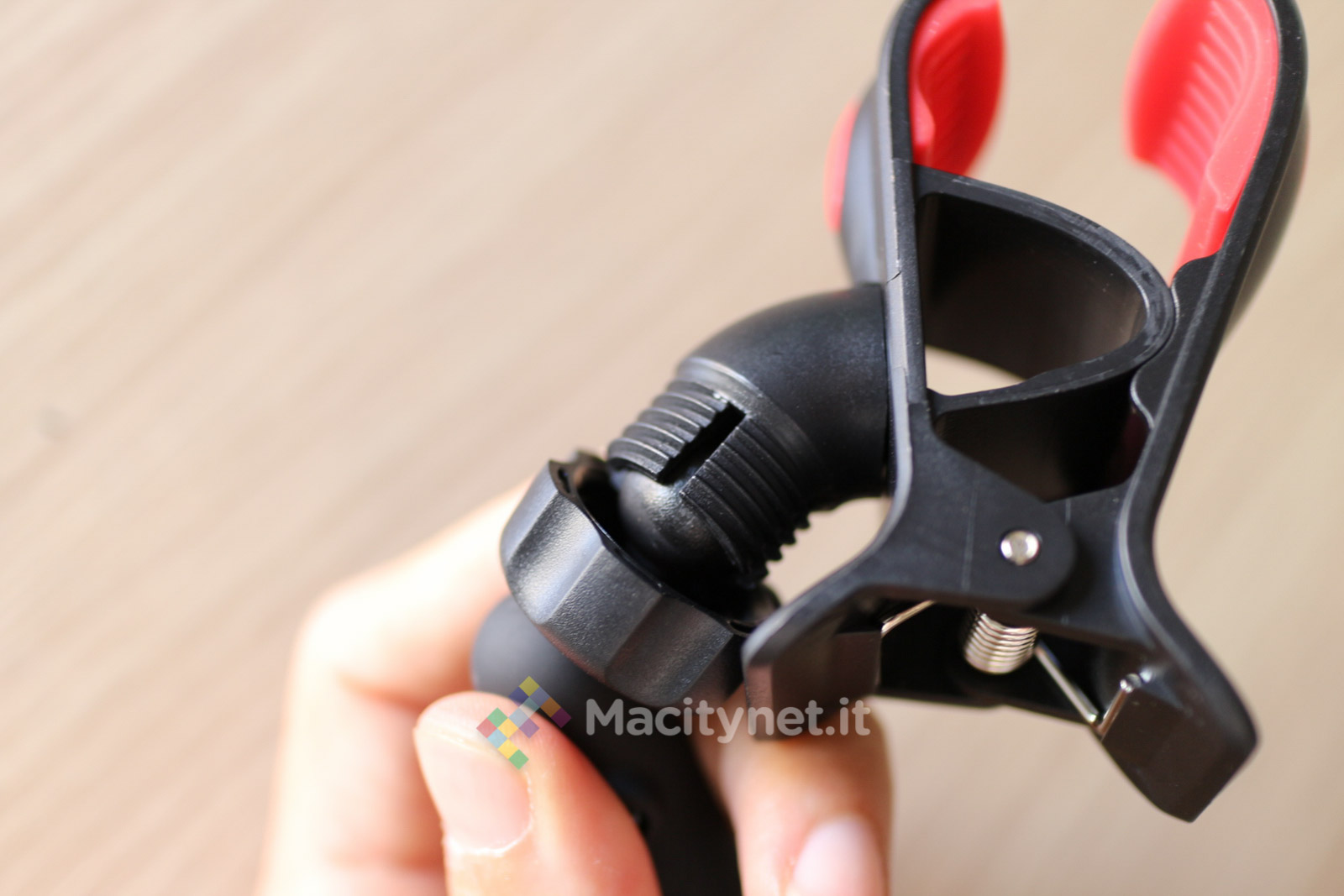 La pinza è interamente in plastica di buona qualità. Nonostante l’apertura della “molletta” possa sembrare forse troppo “leggera” per sostenere un telefono come il nostro iPhone 6 Plus che abbiamo usato per le varie prove, in realtà la presa è sufficientemente forte per tenerlo ben bloccato. Ciò è reso possibile dai due strati di gomma – removibili per essere lavati se sporchi – che afferrano il telefono ed evitano che scivoli via. In plastica è anche lo spinotto che si infila nella presa accendisigari: la copertura gommata aumenta l’aderenza all’interno della presa, in più tutta la struttura viene ulteriormente stabilizzata dalla rondella in gomma che troviamo sulla punta dello spinotto, caratterizzata da 6 piccole protuberanze che lo bloccano nella presa evitandone eventuali dondolii anche con l’auto in corsa. L’unica parte in metallo è in braccio metallico, lungo all’incirca 10 centimetri, che può essere piegato in tutte le direzioni per orientare al meglio il dispositivo agganciato. E’ molto duro e difficile da piegare, ma ciò è anche a vantaggio della stabilità generale dell’accessorio una volta trovata la posizione corretta.