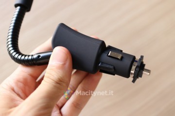 Abbiamo provato questo supporto sulla nostra automobile (Citroen Nemo del 2013) dove lo spinotto accendisigari si trova proprio sotto il freno a mano, una posizione scomoda per poter godere a pieno del vantaggio di avere un accessorio 2-in-1, quantomeno per le funzioni di navigazione GPS visto che il display si trova in una posizione scomoda per essere raggiunto facilmente con lo sguardo. Ad ogni modo, non abbiamo notato difetti per quanto riguarda il funzionamento generale dell’accessorio: si aggancia saldamente alla presa, la pinza afferra bene il telefono e grazie al braccio snodabile ed alla testa a sfera, si può posizionare praticamente in qualsiasi posizione.