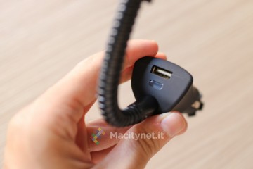 Anche percorrendo strade dissestate, superando continuamente dossi (la nostra città in questo non si fa mancare nulla), non si è mai spostato da dove lo avevamo lasciato, dimostrando di essere un valido compagno di avventure. Un altro vantaggio è sicuramente quello di ridurre l’ingombro in macchina visto che, con un solo accessorio da riporre nel portaoggetti quando non si usa, si può sia tenere fermo il telefono che ricaricarlo grazie alla presa USB incassata nello spinotto. Anche con un cavo lungo, è sufficiente farlo girare intorno al braccio in metallo per evitare di farlo penzolare in macchina, una caratteristica che solo un prodotto come questo può offrire.