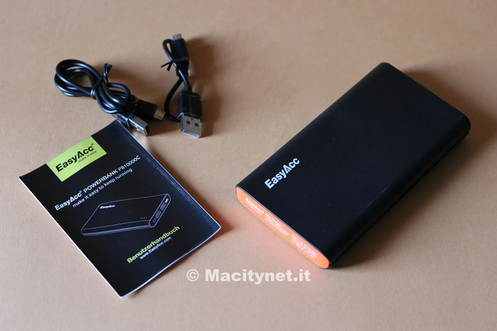 Avere uno smartphone o un tablet sempre con sé durante il giorno vuol dire anche doverlo ricaricare almeno una volta in quanto sappiamo ormai molto bene che il difetto più grande degli attuali dispositivi elettronici è la scarsa autonomia se utilizzati per molte ore. Parte da questa constatazione l’impegno di numerosi produttori che, come EasyAcc, stanno lavorando molto nel settore delle batterie d’emergenza. Proprio EasyAcc ha avuto un grande successo su Amazon con la PB10000C, una batteria da 10.000 mAh che è stata a lungo il prodotto più venduto nella sua categoria, grazie al favorevolissimo rapporto tra prezzo e prestazioni. 10000 mAh a 26 euro sono qualche cosa che i concorrenti non riescono a pareggiare e che è sicuramente interessante misurare in termini di efficienza e qualità. Di qui arriva la ragione di questa recensione.