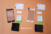 La confezione in cui sono custodite è la classica in cartoncino illustrato che contraddistingue i prodotti Aiino. Al suo interno ne troviamo due insieme al manuale d’istruzioni, allo sticker per la rimozione della polvere, ad un panno in microfibra per la pulizia del display ed al cartoncino per la rimozione delle bolle. Come si evince chiaramente dalle immagini, le pellicole non sono completamente trasparenti, bensì hanno una cornice nera o bianca a seconda del dispositivo al quale saranno applicate. Si tratta una scelta dalle molteplici funzioni: innanzitutto, facilita l’applicazione in quanto si ha un ulteriore punto di riferimento a cui badare. Soltanto dopo l’applicazione ci si rende conto del secondo vantaggio, quello di nascondere totalmente il bordino solitamente visibile con le pellicole completamente trasparenti: in questo modo, specialmente se si utilizza l’iPhone con una cover, sembrerà di avere un telefono senza pellicola. In prossimità di speaker, fotocamera e sensori, nonché intorno al Touch ID, ci si accorge della presenza della pellicola solo se si guarda da vicino e con attenzione: una scelta estetica da non sottovalutare quando si opta per una soluzione del genere.
