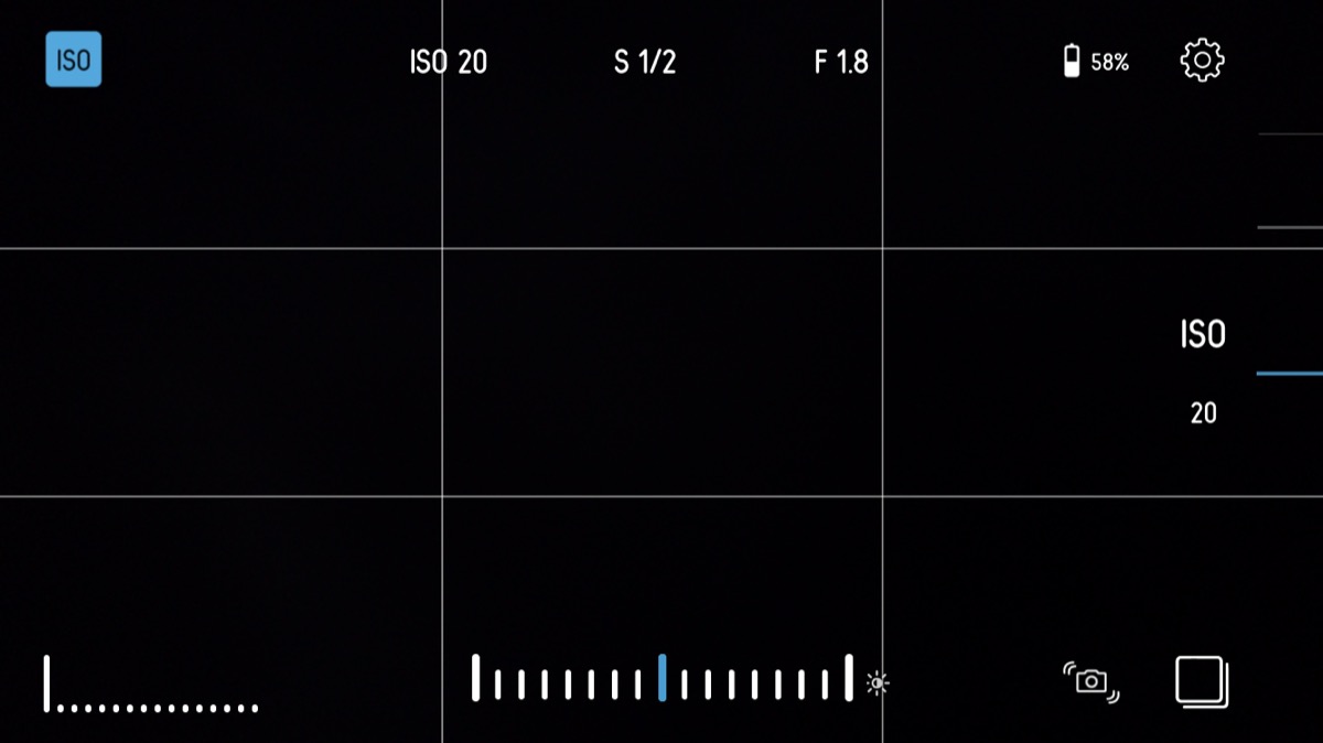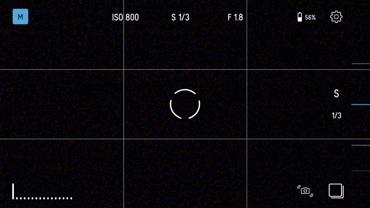 Manuale – è l’utente a scegliere ogni parametro. Con una ghiera regola lo zoom, con un’altra ghiera la sensibilità della pellicola (ISO), dal touchscreen il tempo di scatto (S) e tramite il pannello Impostazioni, una serie di parametri, tra bilanciamento del bianco, flash, aspect-ratio, HDR, formato, e messa a fuoco, scegliendo eventualmente anche filtri e attivando istogramma e griglia su schermo.