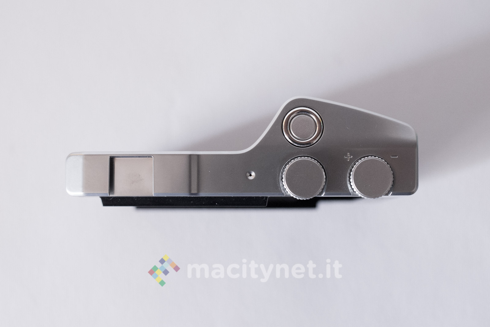 I controlli fisici che mette a disposizione sono 4, nello specifico un pulsante di scatto e tre ghiere che permettono rispettivamente di cambiare modalità di scatto, effettuare uno zoom e modificare l’esposizione senza dover interagire con lo schermo del telefono (quindi potenzialmente anche in inverno indossando un paio di guanti comuni).