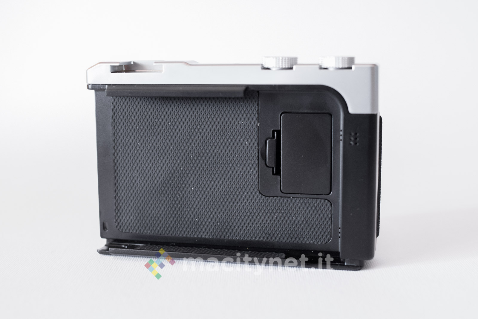 Fondamentalmente di metallo c’è solo l’attacco a vite 1/4‘’ sul fondo, mentre pulsanti e ghiere, slitta per luce LED o flash compresa, sono in plastica. Il terzo materiale che compone questo accessorio è la gomma, che troviamo in un rivestimento interno per garantire un’ottima aderenza dello smartphone, e sull’impugnatura esterna promettendo un’ottima presa quando si utilizza iPhone come una fotocamera.