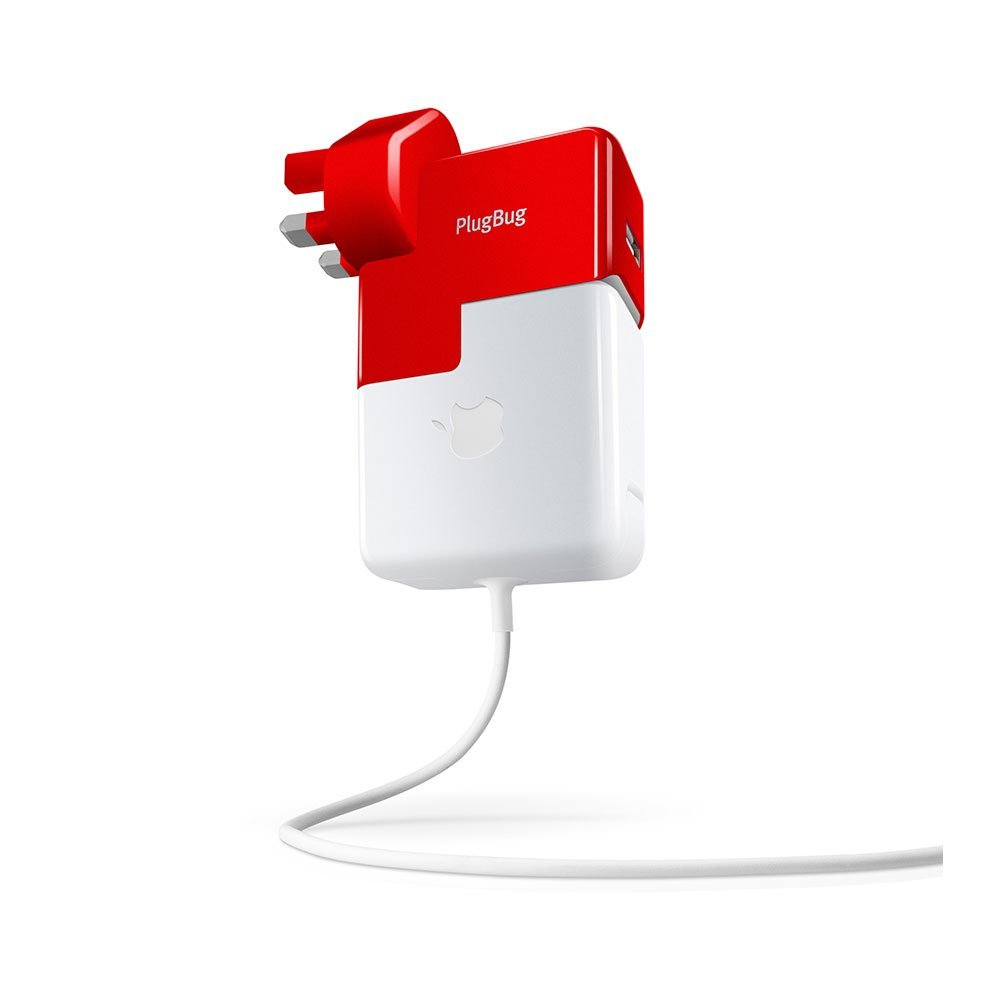 PlugBug International è un due in uno: da una parte è un sistema di ricarica compatibile con le prese di corrente internazionali, ma è anche un sistema per usare una sola spina invece che due quando si ha a disposizione anche un MacBook Pro. Twelve South ha infatti ideato un originale e del tutto esclusivo sistema che integra il caricabatterie per iPad o iPhone (e qualunque prodotto che attinge energia da una presa USB) e quello per il computer. Per capire come PlugBug International funziona basta un’occhiata alle immagini che pubblichiamo in questo articolo: il caricabatterie è strutturalmente simile al caricabatterie per MacBook: ha una spina rimovibile con 5 diversi tipi di connettore, tutti quelli compatibili con i principali paesi del mondo (Europa, Inghilterra, Usa e Giappone, Paesi del Pacifico). In questa configurazione l’alimentatore di color rosso vivo è un semplice caricabatterie USB da viaggio. Ma se avremo anche un alimentatore per MacBook Pro potremo comporre i due accessori, creandone uno solo; basterà aprire lo speciale “sportellino” dal PlugBug International per rivelare una slitta che si incastrerà nell’alimentatore MacBook Pro al quale avremo tolto la spina. Il risultato sarà, appunto, un due in uno: un adattatore internazionale per ricaricare il MacBook Pro (grazie alla molteplicità di spine) e un caricabatterie per iPad o iPhone e tutto questo occupando una sola presa di corrente.