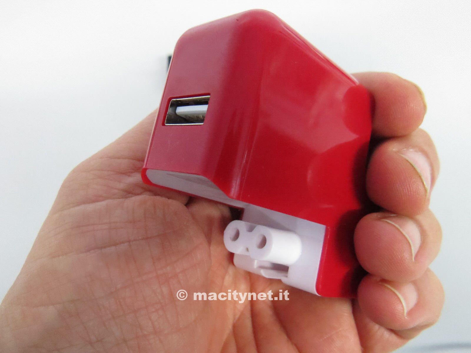 Il PlugBug International, come accennato, è geniale dal punto di vista della concezione e del design. Originale la scelta del colore rosso in pieno contrasto con il bianco neutro dell’alimentatore del MacBook Pro. Una volta incastrati insieme l’effetto non passerà inosservato. Va però detto che i materiali visti da vicino non sono al top come invece ci ha abituato Twelve South. La plastica sia delle spine che dello sportellino di copertura sembra un po’ economica e fragile anche se messa sotto stress pare resistere piuttosto bene e anche gli incastri sono piuttosto precisi. Il funzionamento è del tutto intuitivo: basta scegliere la spina che si adatta alla presa che abbiamo sotto mano e poi collegare, a seconda del bisogno, o solo l’alimentatore per iPad e iPhone, o comporre… il puzzle e ricaricare sia il Mac che il dispositivo mobile. Tecnicamente l’alimentatore per iPad e iPhone è un prodotto di buona potenza, 10W è l’uscita che offre l’accessorio incluso in iPad mini retina. Il livello è doppio a quello che otteniamo dall’alimentatore di iPhone, ma leggermente inferiore rispetto a quello che viene incluso in iPad Air (12W). Questo vuol dire che ricaricheremo al doppio della velocità il telefono e ad una velocità leggermente inferiore l’iPad di ultima (e anche penultima) generazione, ma comunque superiore, come accennato poco più sopra, a quella che potremo attingere da un portatile. Peccato, a fronte di tutto questo, che la porta USB sul PlugBug International sia una sola. Sarebbe stato comodo poter caricare due dispositivi contemporaneamente.