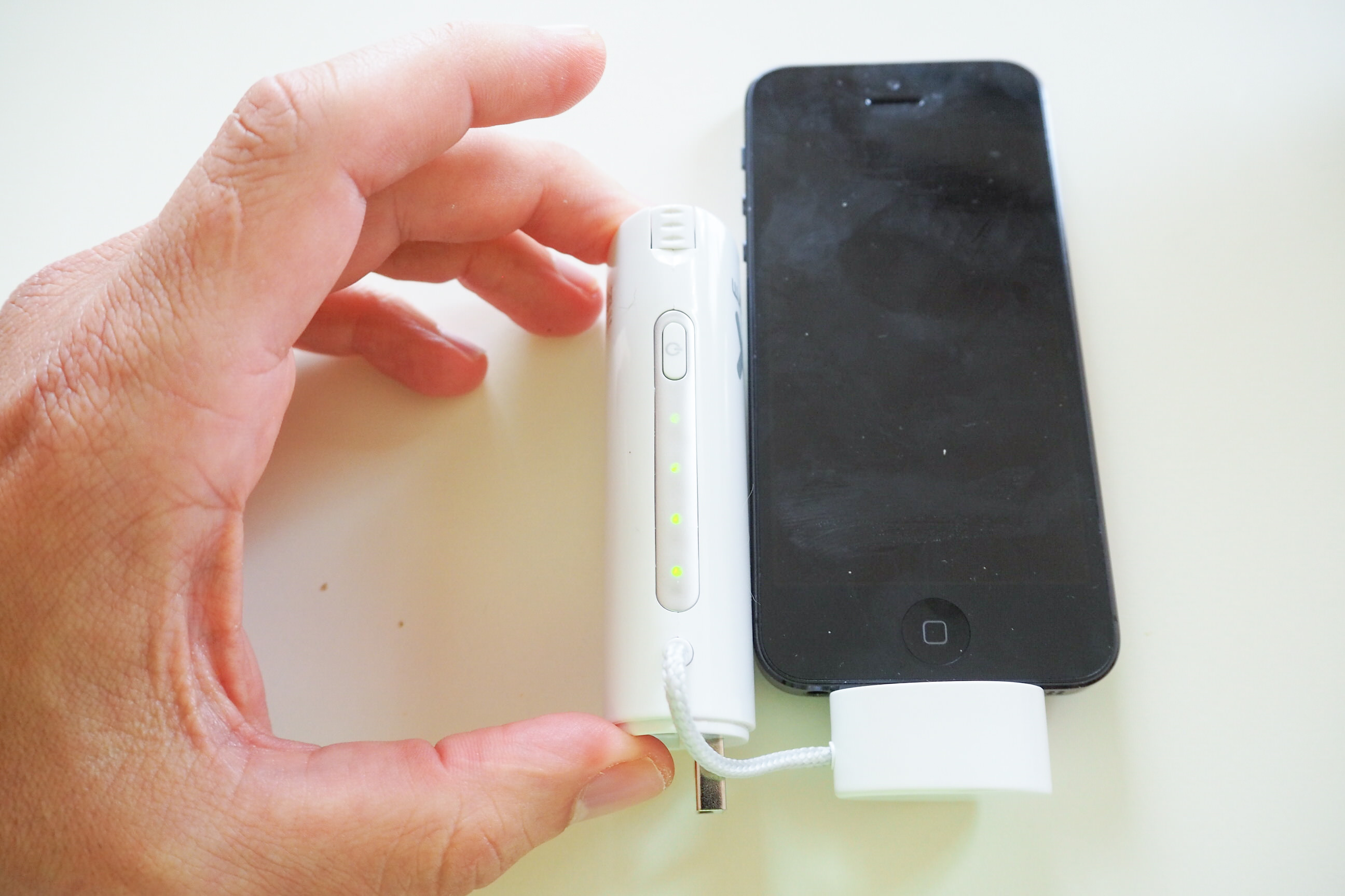 Il design della batteria è molto piacevole. Si tratta di un cilindro lungo dieci centimetri e largo 3 centimetri e spesso 2,5 centimetri. Per le dimensioni non sta comodamente nella tasca di un paio di pantaloni (anche perchè il cappuccio-dock la allunga di un paio di centimetri rispetto ad altre concorrenti), ma non è un problema collocarla nella tasca interna di una giacca o in una borsa, visto che non è pesante; i suoi 85 grammi sono inferiori a quelli della maggior parte delle batterie da 2600 mAh sul mercato. 4 LED segnalano il livello di ricarica, un interruttore l’accende a la spegne. Da segnalare che nella confezione troviamo anche una cavo prolunga per USB, che ne renderà più comodo il collegamento ad un alimentatore (non incluso).