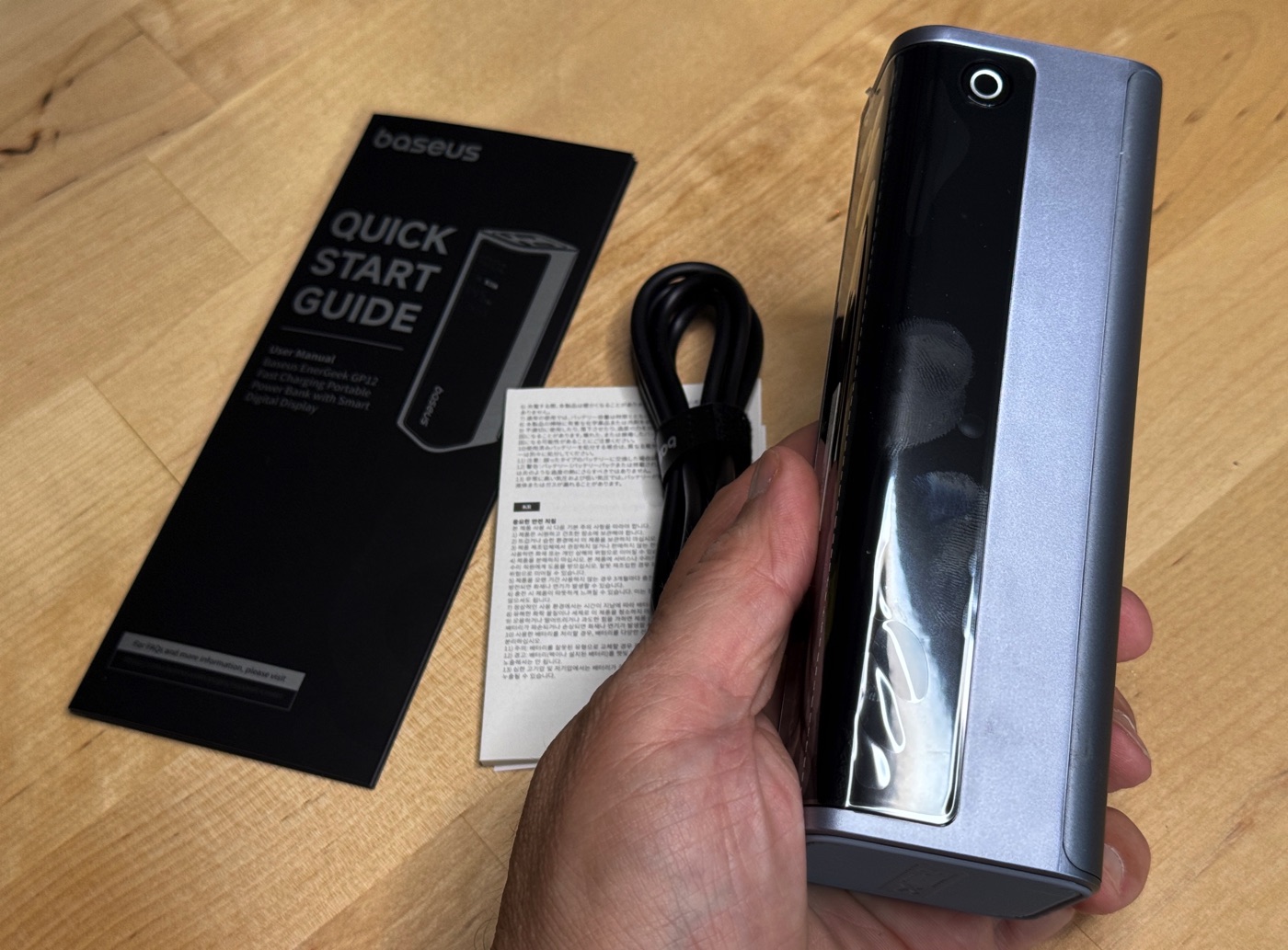 Baseus Energeek GP12 è un parallepipedo compatto, elegante, solido. In mano dà subito una sensazione di affidabilità. Pesa circa 520 grammi, ma distribuiti così bene che spariscono nello zaino accanto a un MacBook. La finitura in grigio siderale con inserti satinati è davvero piacevole.
