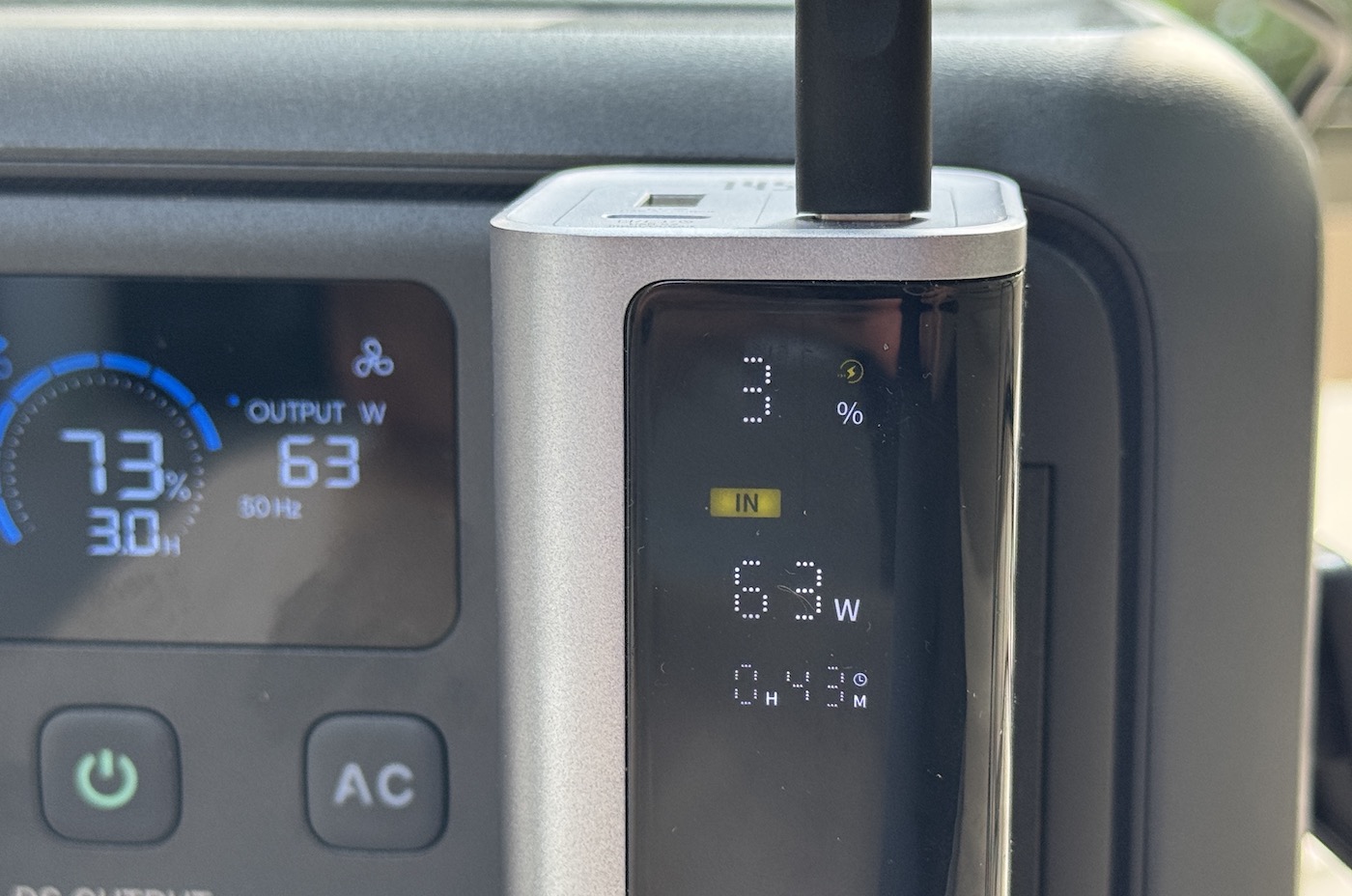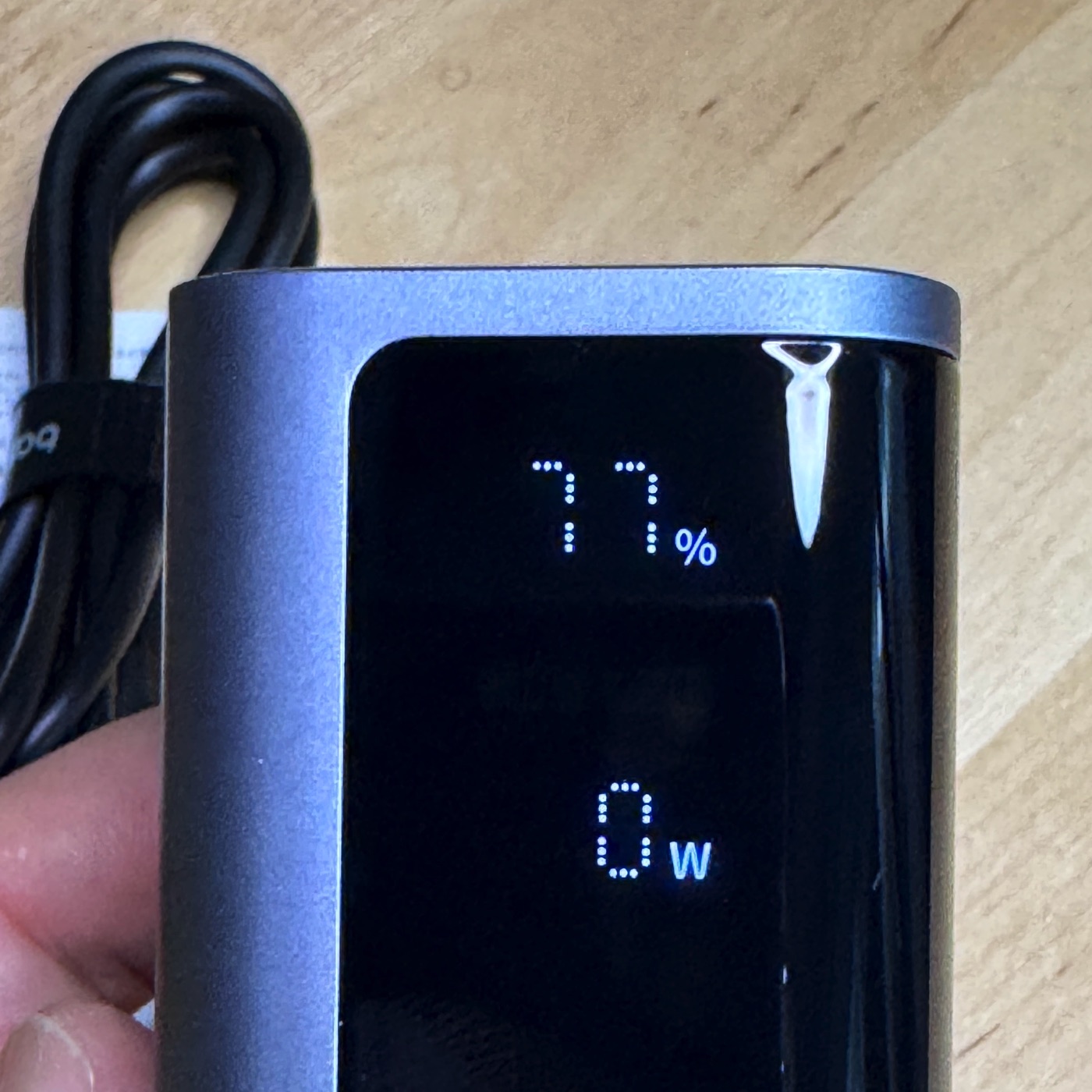Uno dei dettagli più apprezzabili è ovviamente il display digitale frontale. Mostra in tempo reale la percentuale di carica, i watt in entrata o uscita e pure la stima del tempo di carica residua. Non è solo un vezzo estetico: in più di un’occasione ha permesso di capire se stavamo sovraccaricando il caricatore o se era possibile sfruttare una porta per un secondo device.