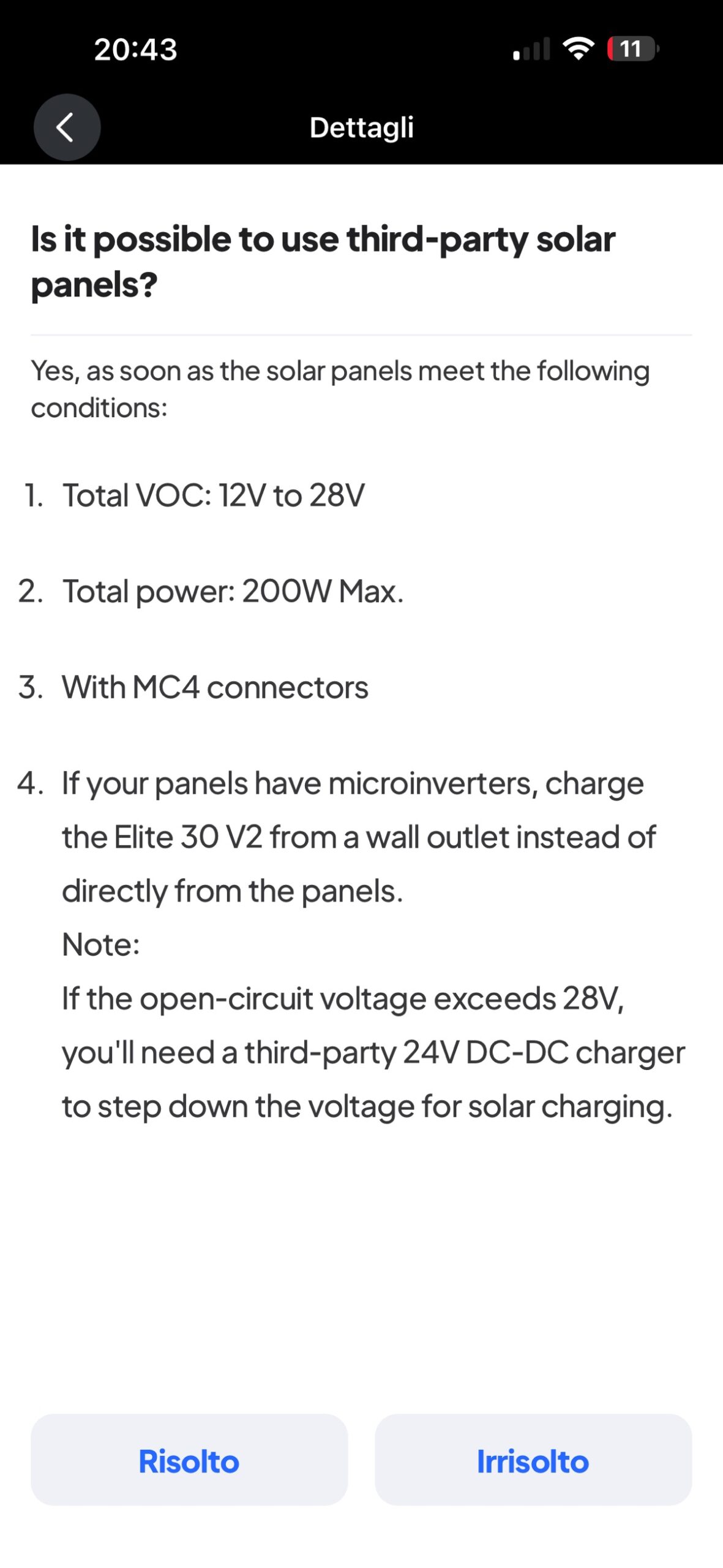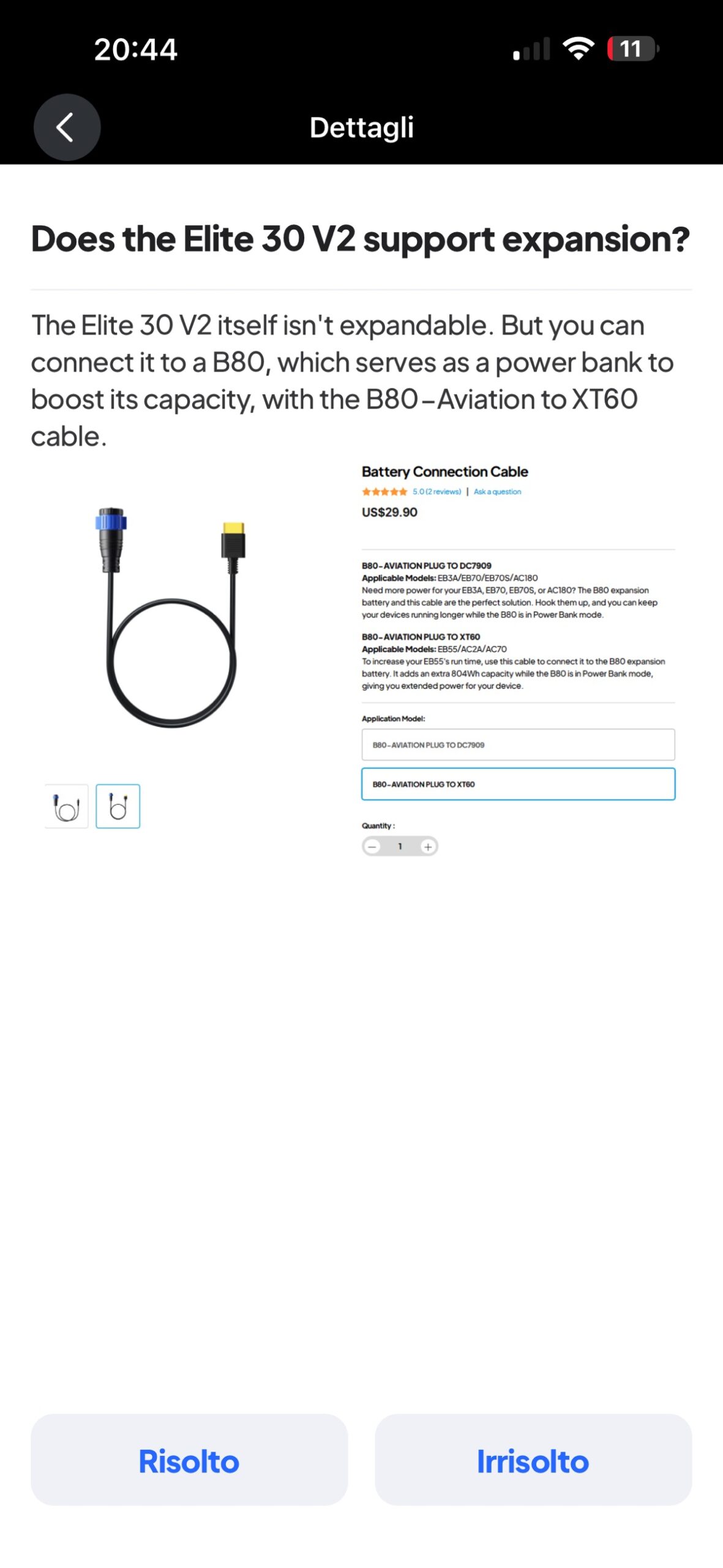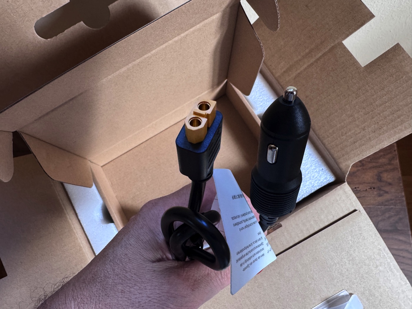 – Sarebbe stato comodo un adattatore per i pannelli solari / XT 60 ma ve la cavate con poco acquistandone uno con cavo corto e buona sezione.