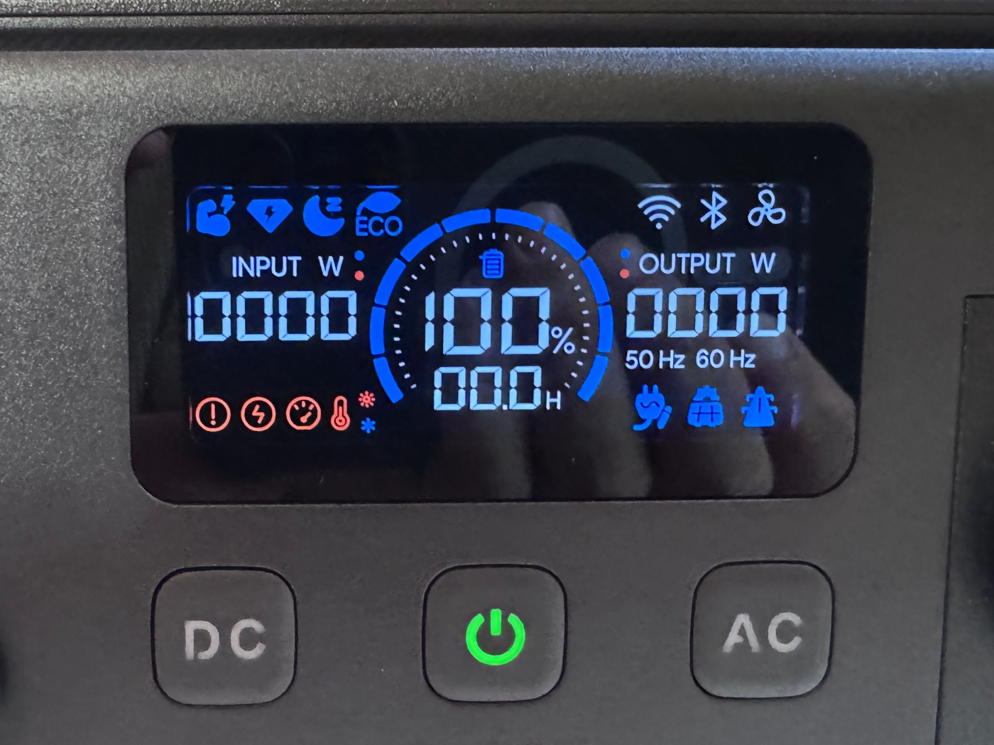 Con 200 W di pannelli, in condizioni reali e cielo pulito, due ore e un po’ bastano per tornare al 100%. Noi l’abbiamo provata in una giornata di sole esposta a Est/Sud ma con una angolazione non ottimizzata. L’ingresso con un pannello portatile di Bluetti forniva 140 Watt e ci permetteva di ricaricare il nostro MacBook M1 e allo stesso tempo generare l’energia necessaria per le ore notturne.