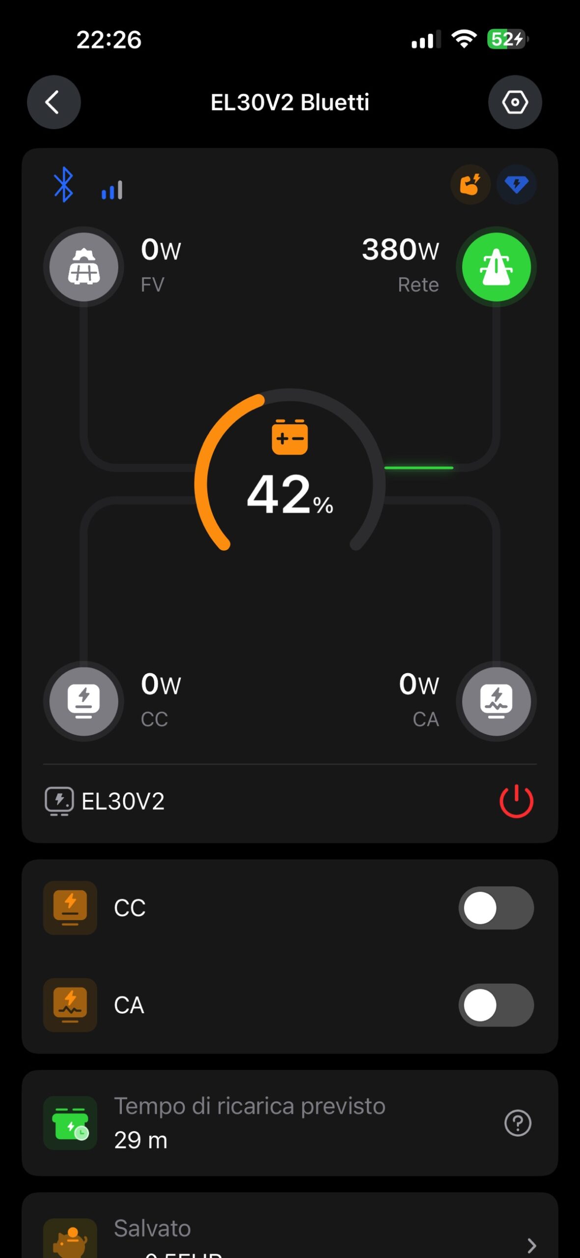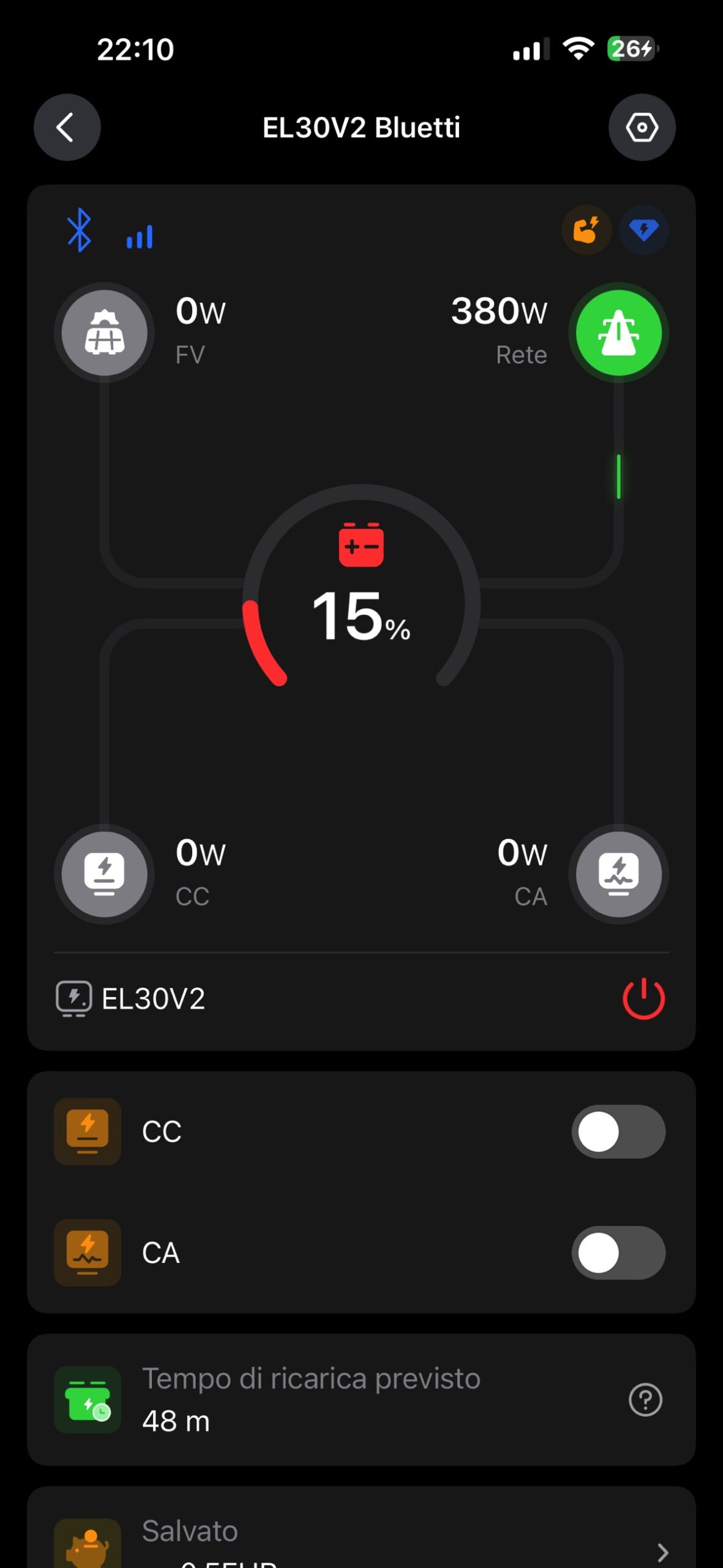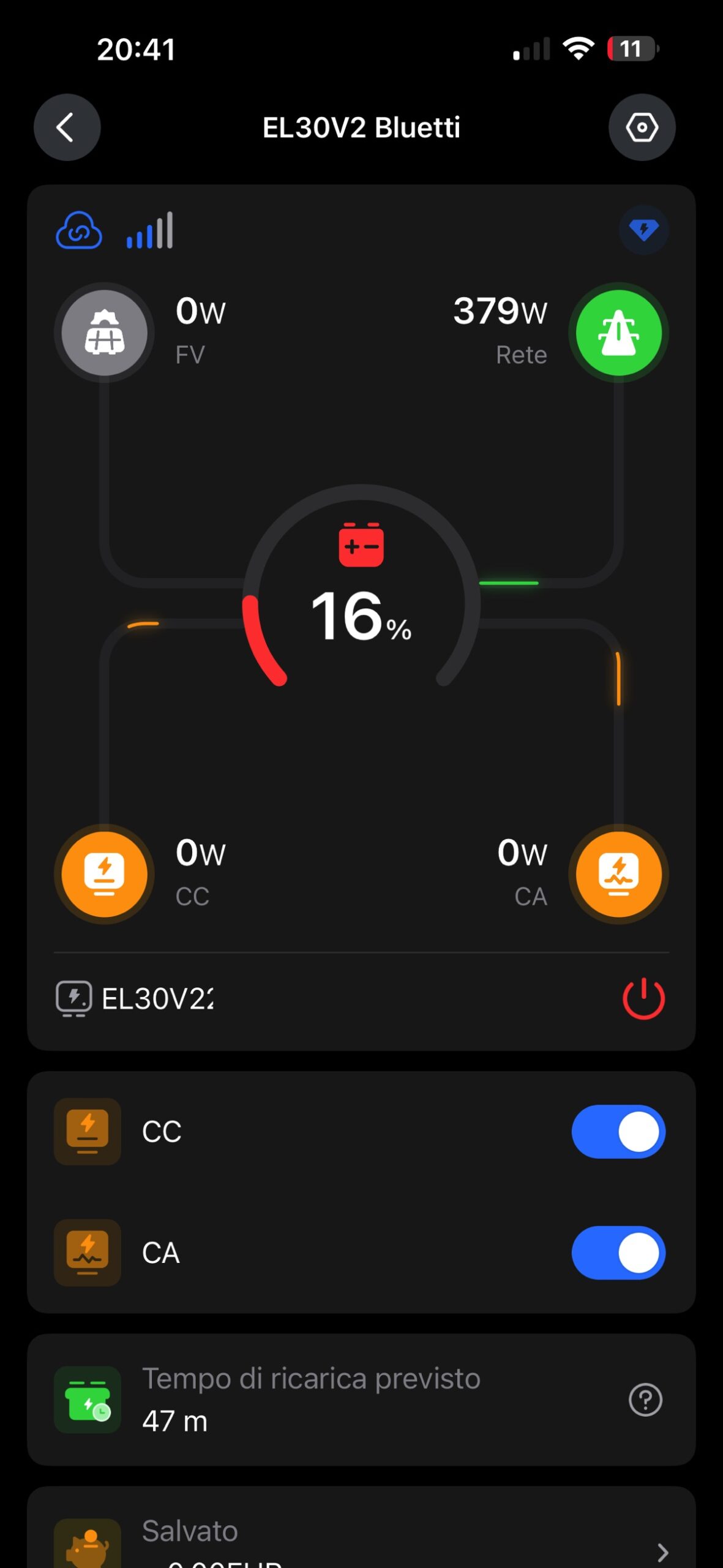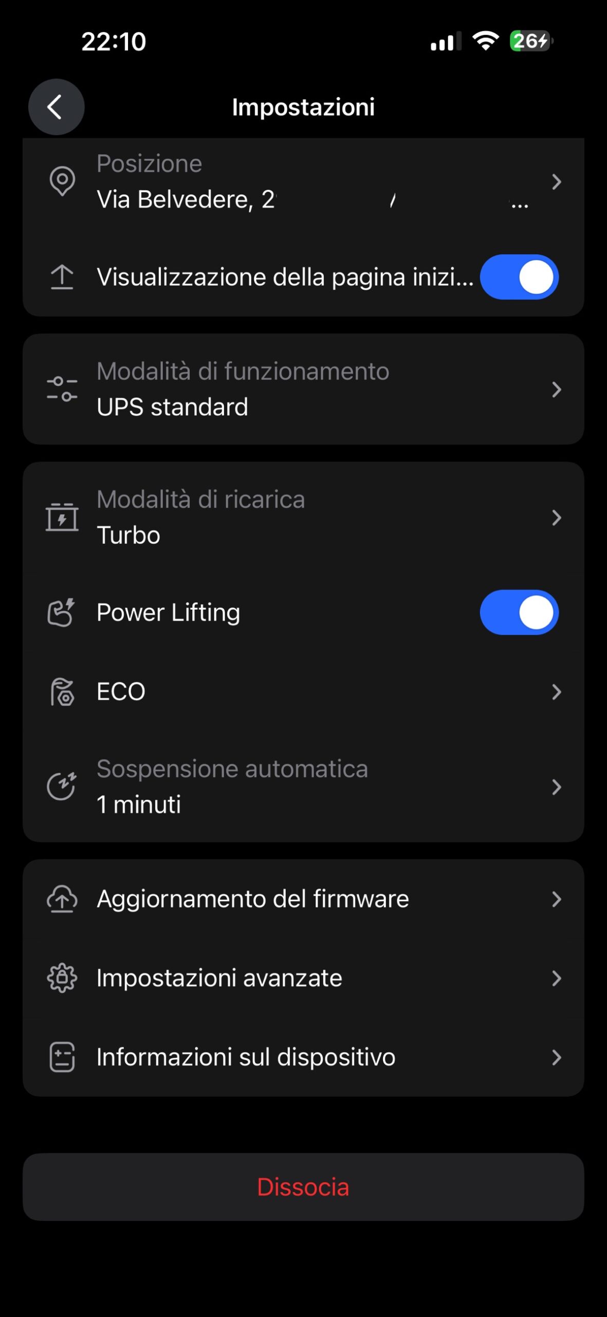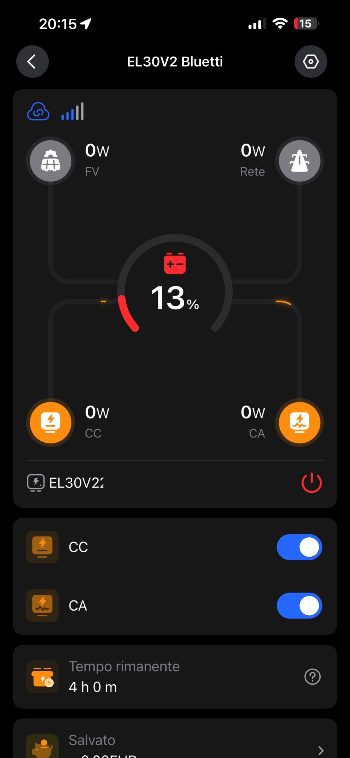 Il comportamento alla ripresa dell’energia è “furbo”: con la modalità Salva lo stato dell’interruttore principale attiva, la power station si riaccende da sola e riprende ad alimentare le utenze, utile per chi non è in casa o non può intervenire.